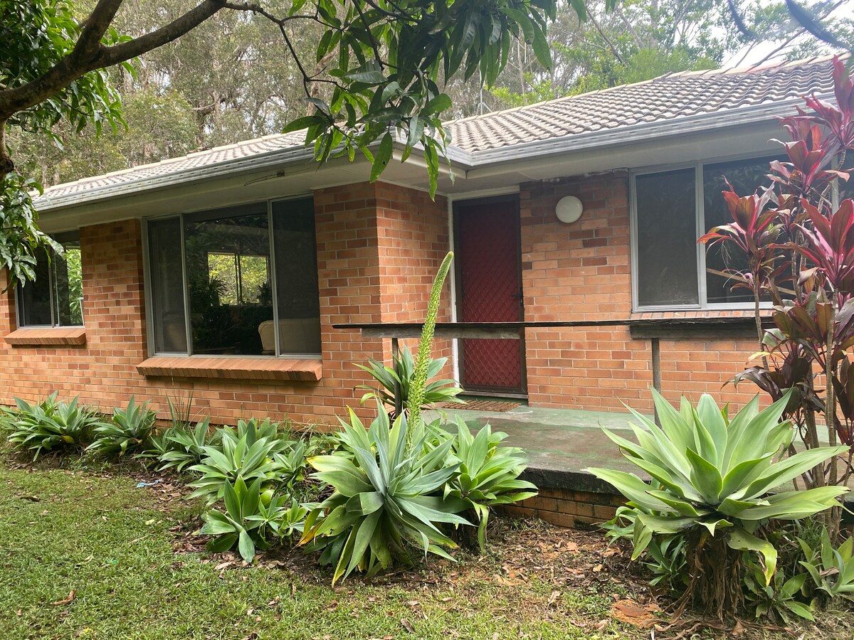 Naše bivališče obsega 6 hektarjev avtohtonega gozda ob neokrnjenem jezeru, le kratek sprehod od čudovitih, neprepognjenih plaž. Nahajamo se v bližini vasi Urunga in pol ure vožnje od letališča Coffs Harbour. Uživajte v zasebnosti, razgledih in mirni naravni okolici. Veseli smo družin, parov, samostojnih pustolovcev in poslovnih popotnikov. Dvonadstropna enota (17 stopnic) ima spalnico z lastno kopalnico, dnevno sobo in zasebnim balkonom z žarom. Ločena kuhinja s pralnico. Hišni ljubljenčki niso dovoljeni.