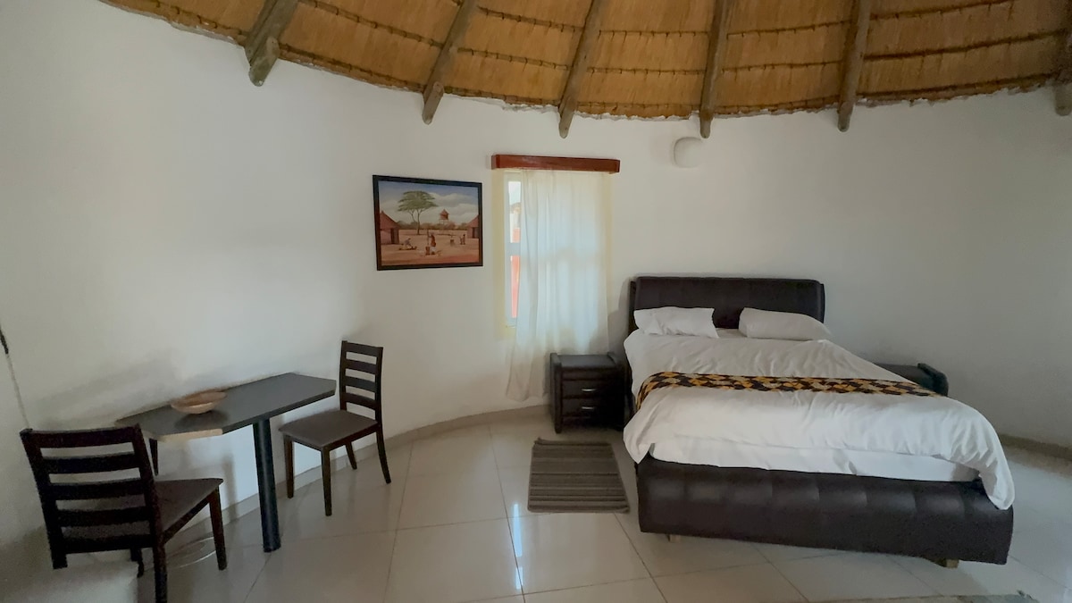 Rustikalna koča na bregu reke Zambezi. Na voljo so zasebne koče v spalnici ali šotorska soba.