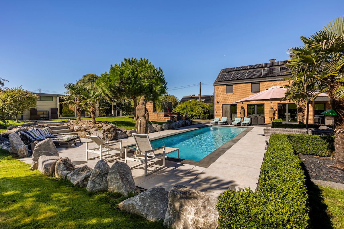 - OGREVAN BAZEN OD APRILA Bazen je zaprt od 22. septembra do 31. 3. - 38* MASAŽNA KAD SKOZI VSE LETO - KINO SOBA, KICKER, PUŠČICE, BILJARD, MIZA ZA POKER, TELOVADNICA - ZABAVE / ROJSTNI DNEVI SO PREPOVEDANI BREZ PREDHODNEGA OBVESTILA - OSEBE IZVEN REZERVACIJE SO PREPOVEDANE V NAMESTITVI - 10 km od Liègea. Če želite obiskati jug Belgije, se sprostiti, pomladiti ,to vas bo osrečilo. Zelenje in narava vas obdajajo!