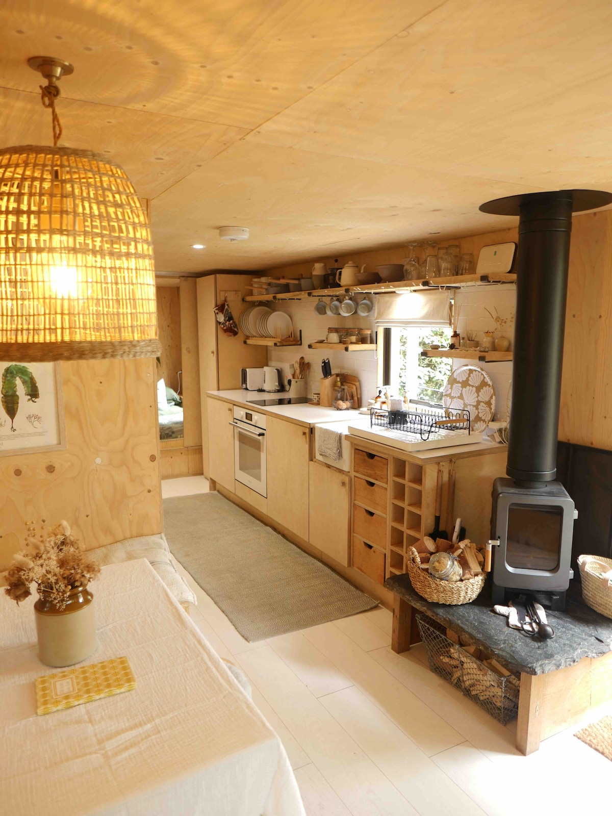 Luxury, Modern, Open plan studio for two adults and one infant. Parking, EV charger, double bed, sofa bed, Wi-Fi, televisions, mood lighting, kitchenette bar, patio. Painted in ultra low VOC, sustainable paint. Park 3 metres from the front door. Relax on the Emma Mattress bed or unwind on the sofa whilst watching 4K smart TV (both areas). Cool your drinks and ice cream in the fridge-freezer or mix a cocktail. For breakfast utilise the espresso machine, toaster, kettle and microwave.