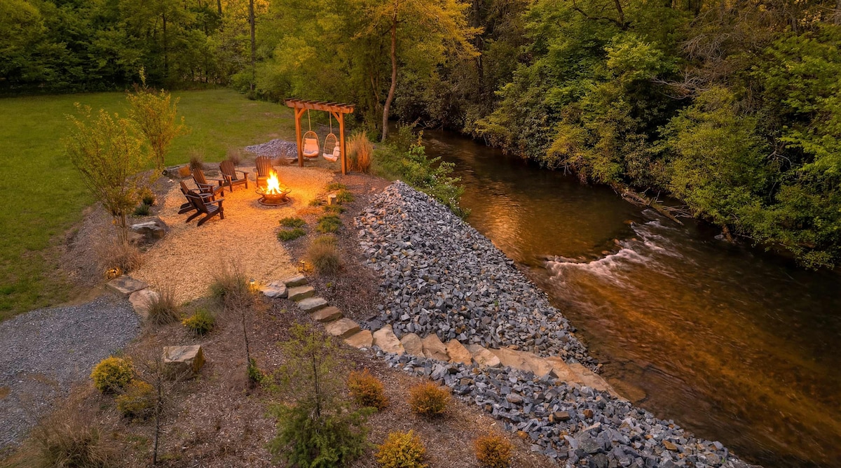 Koča ob potoku z masažno kadjo in ognjiščem | Blue Ridge