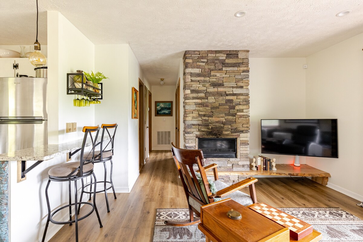 Osvežite se s sproščujočim potovanjem v gore NC. Ta prostorna, sodobna gorska koča je idealen kraj za preživljanje vikenda za par ali majhno skupino. Uživajte v slikovitem razgledu s svežo skodelico kave ali namakanje v masažni kadi po pohodu po parkirni poti. Udobna koča ima vse, kar potrebujete za vikend. Burrow je na novo zgrajen in uteleša lahek, zračen prostor z rustikalnimi in ekološkimi detajli živega roba in drugih naravnih elementov.