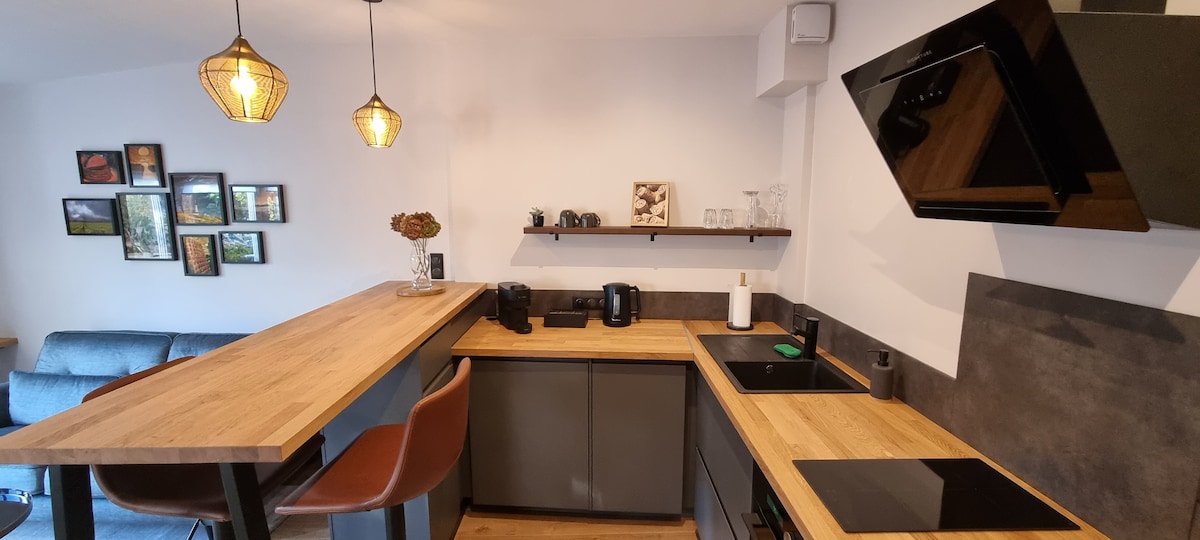 Nichée au cœur des vignes, notre maison est située à Courmas, dans le Parc naturel de la Montagne de Reims, à environ 13 km de Reims. Le gîte Les Chapitres, labellisé 3 épis Gîtes de France, dispose d’un accès indépendant et peut accueillir jusqu’à 4 personnes. Le linge de lit et les serviettes sont fournis. Une place de stationnement est disponible à proximité du gîte. Location de vélos électriques possible sur demande pour découvrir la région.
