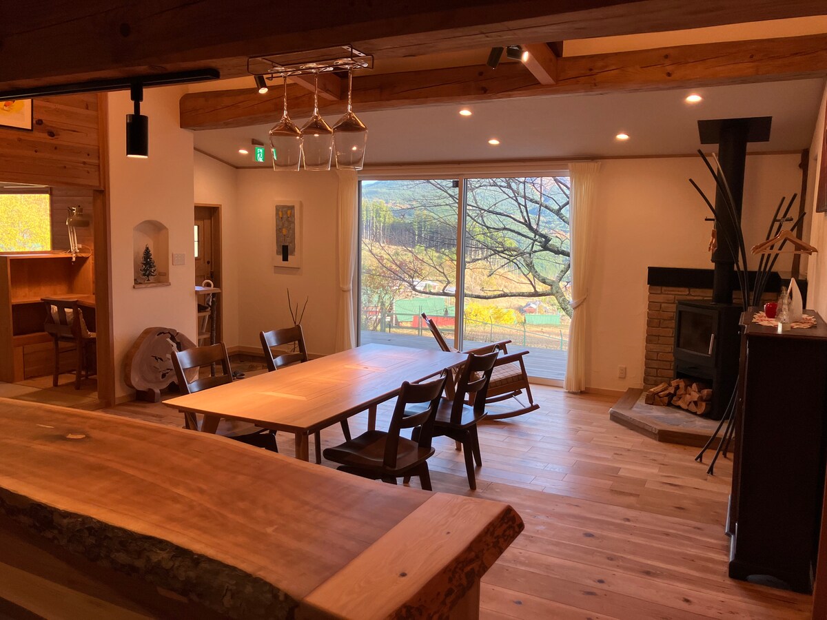 Entire Home Rental – 130㎡ / (3LDK) for up to 15 guests. Enjoy a relaxing stay surrounded by mountains and bamboo, with a private garden perfect for BBQs and bonfires 😊 Even on rainy days, you can BBQ in the covered backyard area. Guests also enjoy experiences like firewood chopping, meeting friendly animals, and cozy evenings by the wood stove in winter—an easy way to enjoy a bit of the camping spirit.