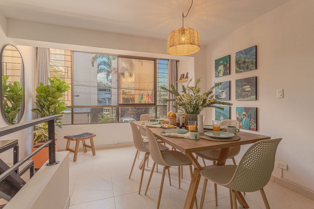 Doživite Medellín v tem elegantnem in privlačnem dvoetažnem prenočišču s sodobnim mestnim pridihom. Spalnica je v spodnjem nadstropju, dnevna soba, kuhinja in kopalnica pa so v zgornjem nadstropju z udobnim prehodom med prostori. Okna, ki gledajo na ulico, napolnijo prenočišče z naravno svetlobo in svežim zrakom. Nahaja se v živahni soseski, ki jo je mogoče prehoditi peš, z enostavnim dostopom do javnega prevoza, kavarn, supermarketov in restavracij. Visokohitrostni internet je idealen za delo na daljavo in raziskovanje mesta.