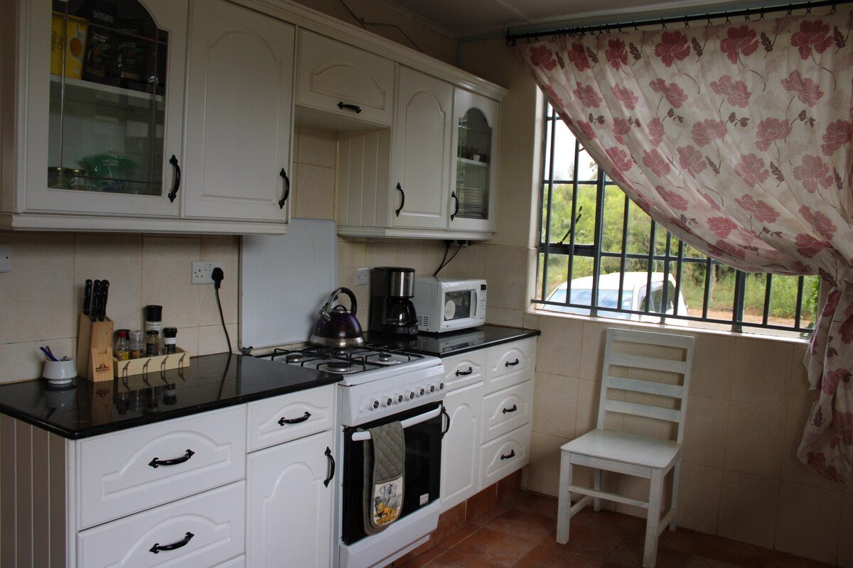 Koča se nahaja na kmetiji v Laikipiji, 32 km od Nanyukija. Nahaja se v bližini Borane in Ngare Ndare s čudovitim panoramskim razgledom na goro Mt. Kenija. Ima velike terase, ki zagotavljajo udobne zunanje bivalne prostore. Kmetija je bogata z vrstami ptic. Popoln oddih za sprostitev v čudoviti pokrajini z divjim občutkom. To je trajnostno prenočišče, ki je zasnovano tako, da zmanjšate svoj odtis na okolje s sončnimi kolektorji in zbiranjem deževnice. Naša hiška na deželi je leta 2023 prejela nagrado Airbnb Africa za trajnost.
