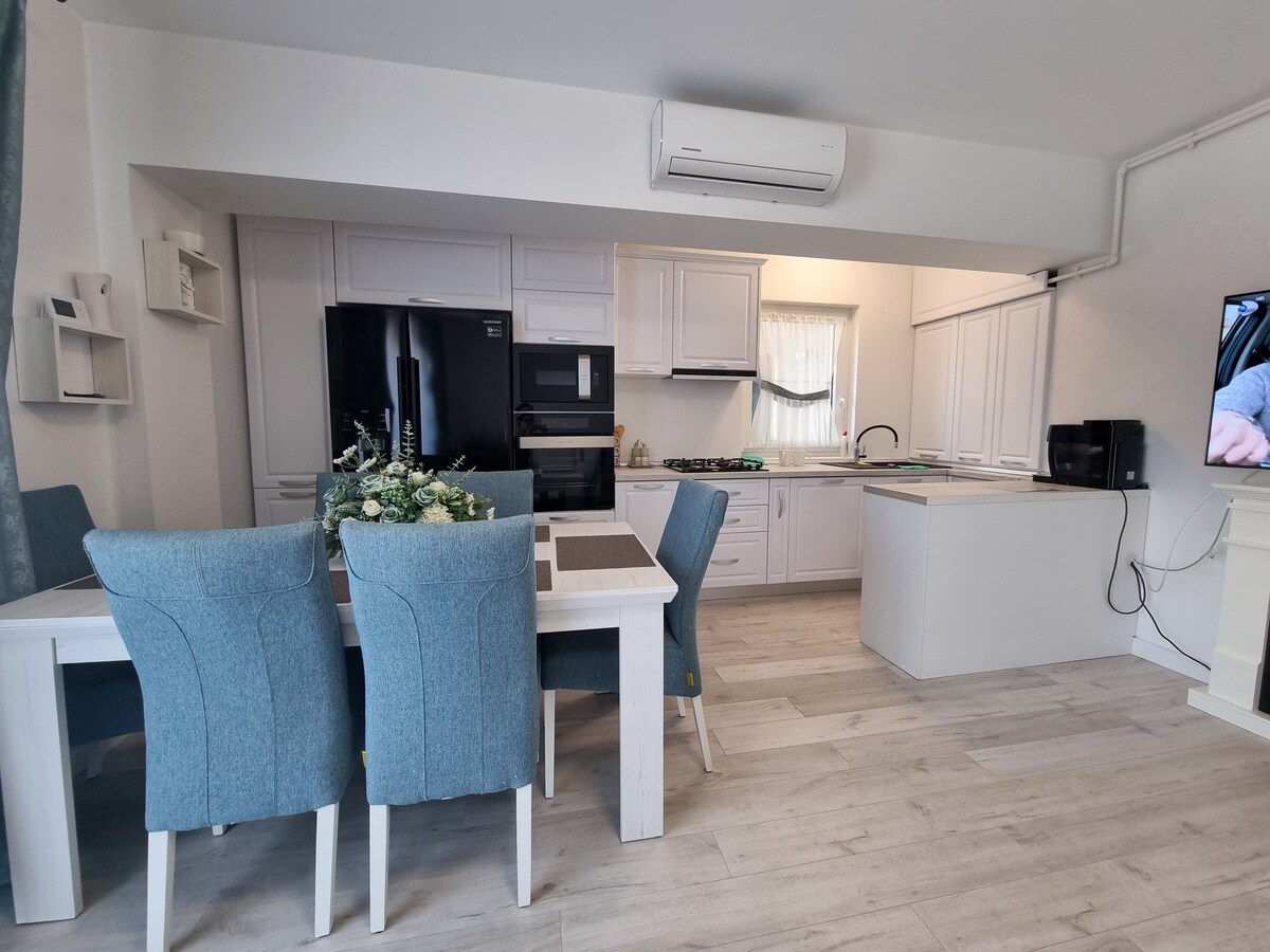 Bucură-te de confortul unui apartament elegant, situat într-un complex rezidențial nou! -1 dormitor spațios cu pat matrimonial -Living modern cu canapea extensibilă si topper -Bucătărie open-space, complet utilată -Balcon -Parcare privată -Supermarket la scară -Dotări: aer condiționat, mașină de spălat rufe/vase, fier/masa de călcat, WiFi -Pătuț și scaun de bebeluș la cerere! -Locație excelentă, aproape de punctele de interes ale orașului! Rezervă acum și bucură-te de o experiență de neuitat!
