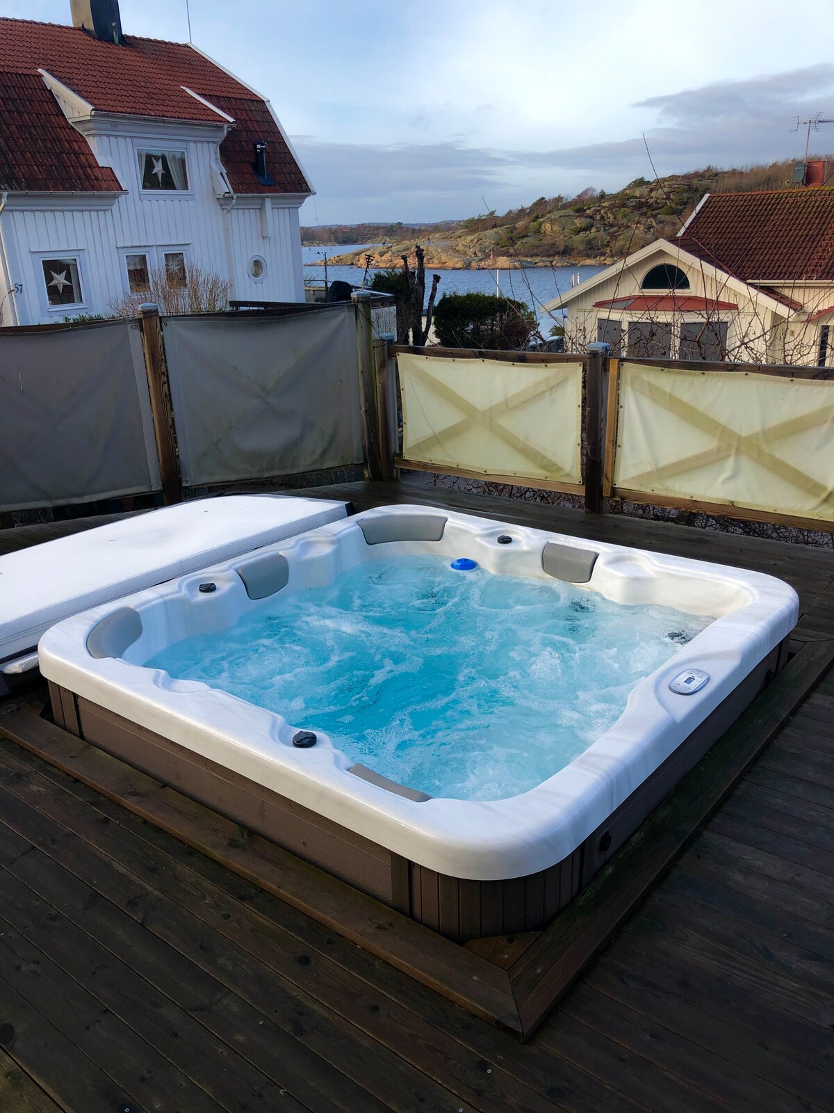 Hiša se nahaja neposredno v bližini udobnega in otrokom prijaznega kopališča s pomoli in peščeno plažo. Začnite dan z jutranjim plavanjem. Zajtrkujte na dvorišču. Uživajte v pogledu na morje in cvrkutanju ptic. Morda vožnja s kajakom. In zaključite dan v masažni kadi po žaru na balkonu. Če želite združiti z mestnim življenjem v Göteborgu, se zapeljete tja v 15 minutah. Še bližje večjim nakupovalnim centrom. Tukaj lahko doživite edinstveni arhipelag v Göteborgu, hkrati pa imate dostop do drugih ponudb v Göteborgu.