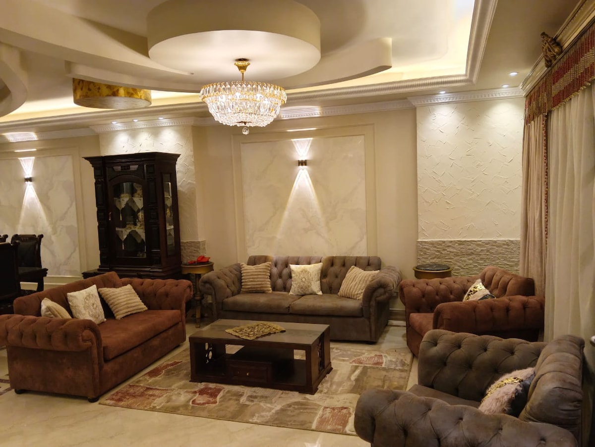 Enjoy a stylish experience at our centrally-located penthouse, in the heart of New Cairo. Very close to Cairo Festival City, 5A by Waterway mall, shopping malls, restaurants, and RingRoad. We love to stay at places that respect privacy and good energy, that's what you'll feel when you enter the house. You will enjoy the fresh air at the roof with warm lighting and cozy sitting, and you'll find peace inside the house with all brand new furniture, coffee machine, smart TV and full AC