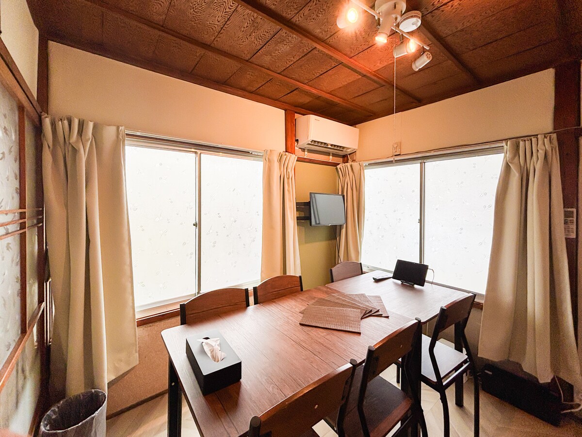 日光街道より少し入ったところにある古民家風の建物です。東武下今市駅に近く夕方など運がよければ大樹の汽笛が聞こえます。 8畳の和室(竹部屋)・6畳の和室(お寺風)8畳の居間(レトロ風)IHキッチン・電子レンジ・トースター・炊飯器・冷蔵庫・洗濯機・ガス乾燥機等を完備していますので此処を拠点に日光・鬼怒川・足尾・栗山など連泊してゆっくり観光できます。駐車場もありますのでバイク仲間とのツーリングにも最適です。朝食は焼きたてのパン1斤(ホームベーカリー)を無料で提供しております。マウンテンバイク・書道・ゲーム・BBQ (炭付き利用料1回2000円お皿等は貸し出しますので食材等は近くのスーパーでお好みの物をご用意下さい)事前予約が必要です。 夜は、隣で私が居酒屋もやっておりますので美味しい料理と美味しいお酒を楽しむことも出来ます。