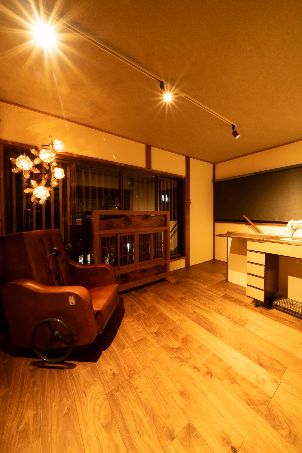 日光街道より少し入ったところにある古民家風の建物です。東武下今市駅に近く夕方など運がよければ大樹の汽笛が聞こえます。 8畳の和室(竹部屋)・6畳の和室(お寺風)8畳の居間(レトロ風)IHキッチン・電子レンジ・トースター・炊飯器・冷蔵庫・洗濯機・ガス乾燥機等を完備していますので此処を拠点に日光・鬼怒川・足尾・栗山など連泊してゆっくり観光できます。駐車場もありますのでバイク仲間とのツーリングにも最適です。朝食は焼きたてのパン1斤(ホームベーカリー)を無料で提供しております。マウンテンバイク・書道・ゲーム・BBQ (炭付き利用料1回2000円お皿等は貸し出しますので食材等は近くのスーパーでお好みの物をご用意下さい)事前予約が必要です。 夜は、隣で私が居酒屋もやっておりますので美味しい料理と美味しいお酒を楽しむことも出来ます。