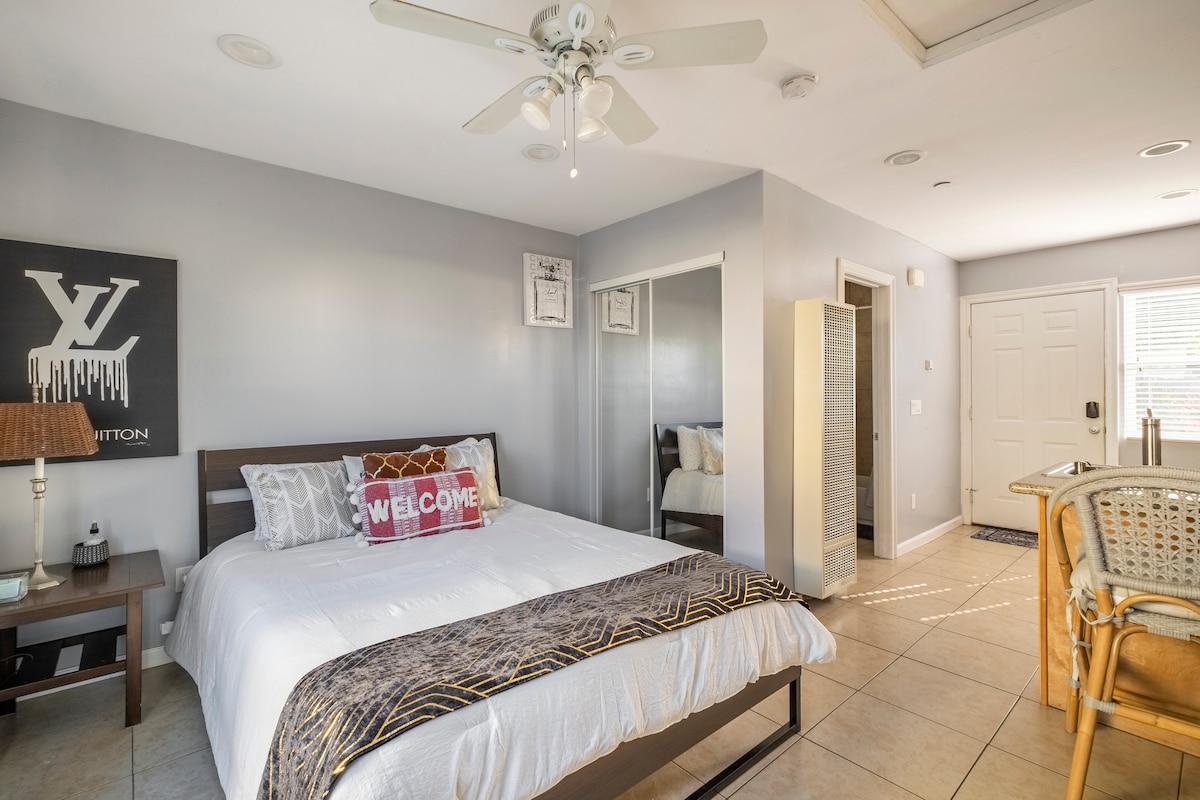 Bivajte v našem očarljivem, elegantnem in sproščujočem studiu! Gostje bodo imeli na voljo zakonsko posteljo in 50-palčno pametno televizijo. Stanovanje se nahaja 15 min vožnje od ključnih območij: letališča SD in okrožja GasLamp ter le 20 minut vožnje od morskega sveta in plaž! Studio ima novo klimatsko napravo za užitek gostov! Ne sprejemamo kajenja, hišnih ljubljenčkov ali zabav. Check out je ob 11. uri. Neodobreni pozni odhodi bodo povzročili kazen v višini 50 USD.