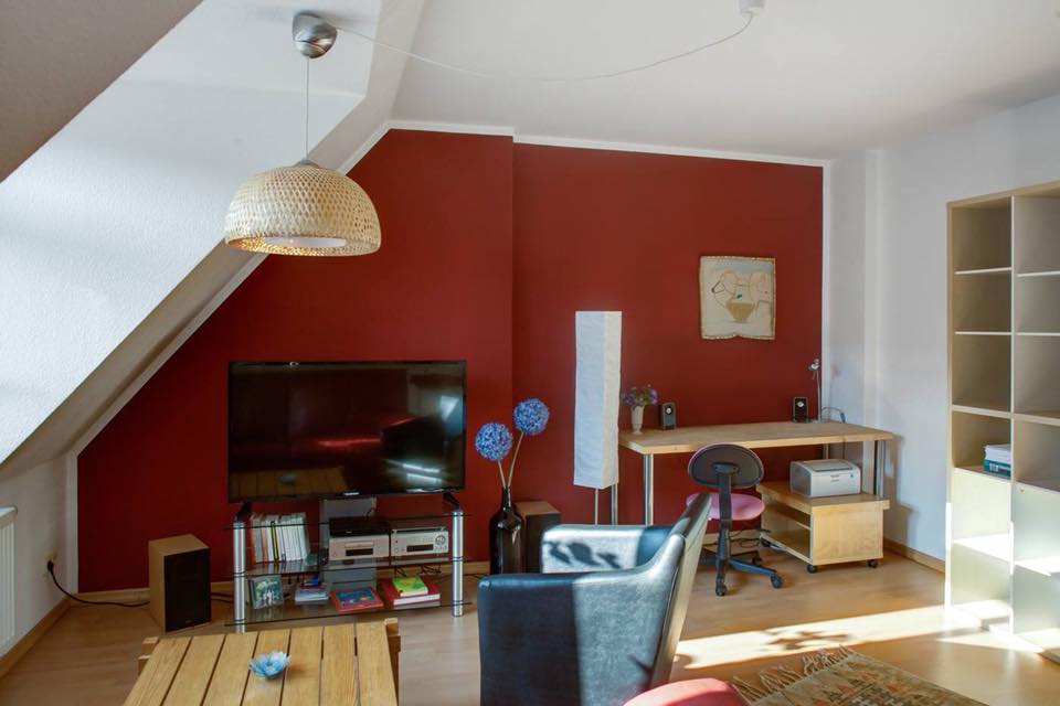 Svetlo in udobno stanovanje se nahaja na velikem vrtu v okrožju Taubach, idilično se nahaja na Ilm, 5 km od centra mesta v Weimarju. Preko ločenega vhoda lahko pridete do dnevne sobe-kuhinje, velike dnevne/ spalne sobe in kopalnice. Drsna vrata se lahko zaprejo v dnevno sobo/kuhinjo. Vrt je mogoče v celoti izkoristiti, različni sedeži vas vabijo, da se sprostite. Weimar ima dve lepi kolesarski stezi in uro avtobusne povezave.