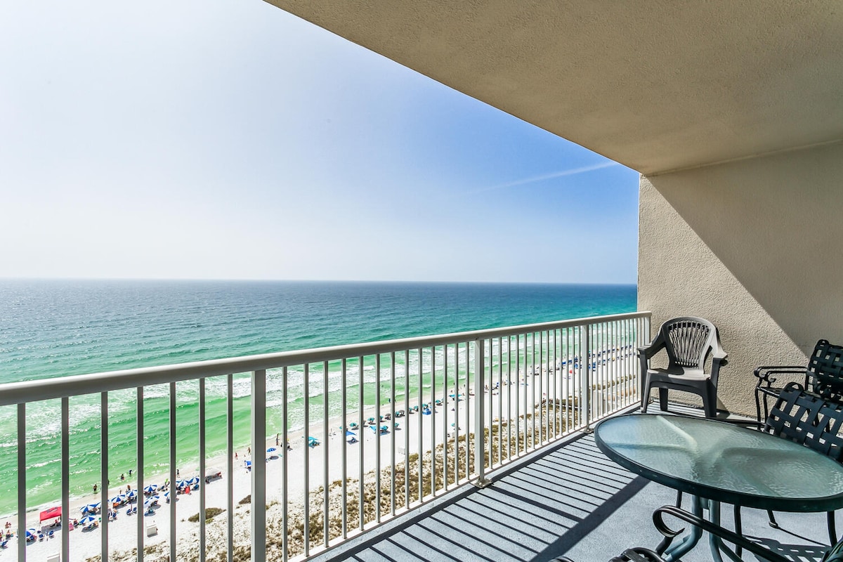 Listing by EXPERIENCED SUPER HOSTS and beautifully professionally decorated 3 B/3 full baths condo RIGHT ON THE GORGEOUS EMERALD COAST WATERS OF THE GULF! Sleeps 8, 1 king bed, 2 queen and a twin XL bunk bed. This 15th floor CORNER UNIT in BEACH COLONY EAST is just what you are waiting for to have panoramic views and enjoy time away with friends or the whole family. INCREDIBLE VIEWS FROM EVERY BEDROOM! (See photos) Olympic size pool, exercise room, walking distance to lots of restaurants.