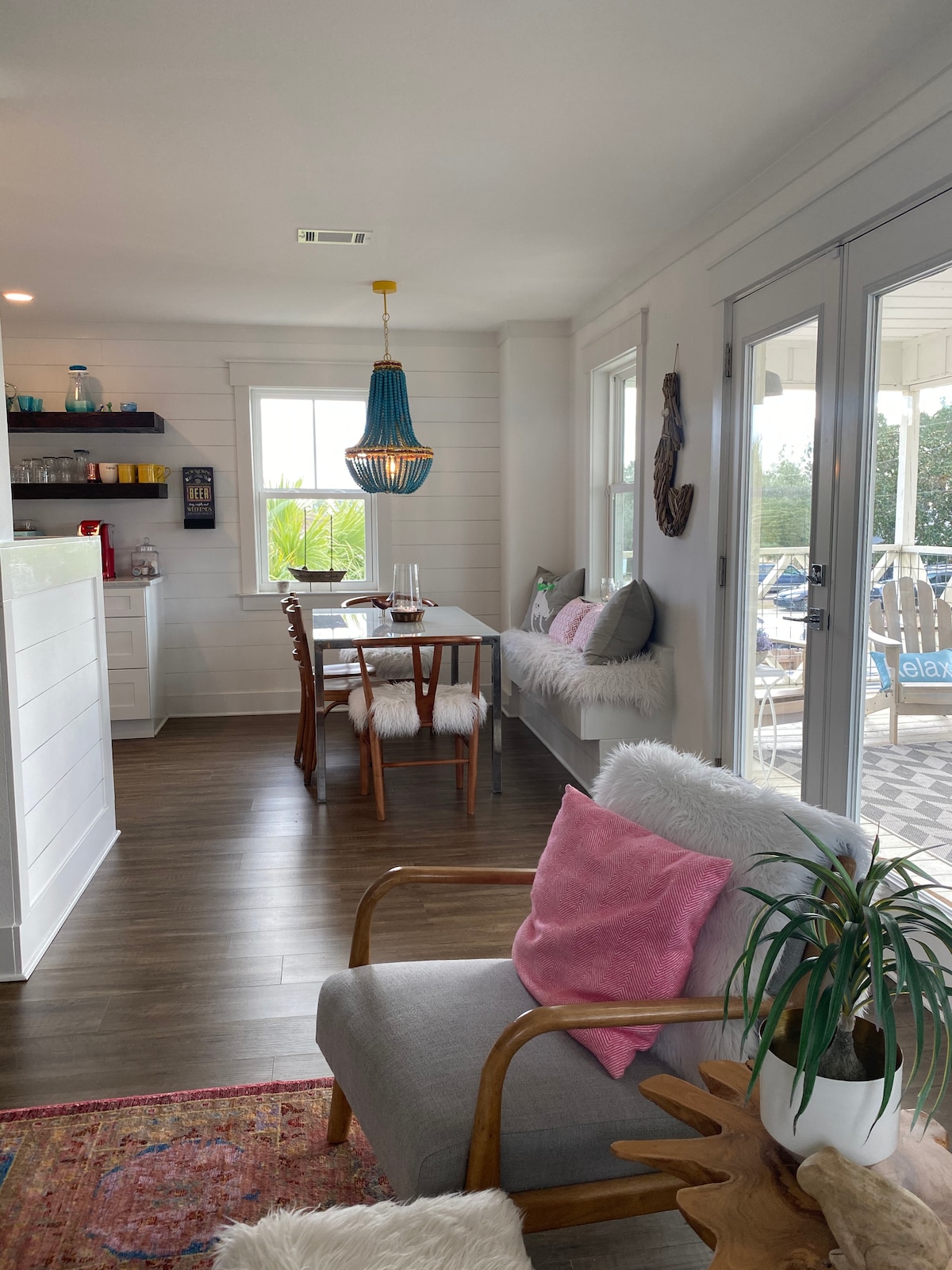 Escape to Florida's best-kept secret, Navarre Beach, just a 5-minute drive from this charming 330 sq. ft. coastal cottage. Perfect for solo travelers or couples, it features airy gabled ceilings, a King-size Murphy bed that converts into a dining/work table, and unforgettable shower experiences!! Conveniently located near restaurants and grocery stores within walking distance, this cozy retreat has everything you need for a relaxing getaway, all just minutes from stunning white sand beaches!!