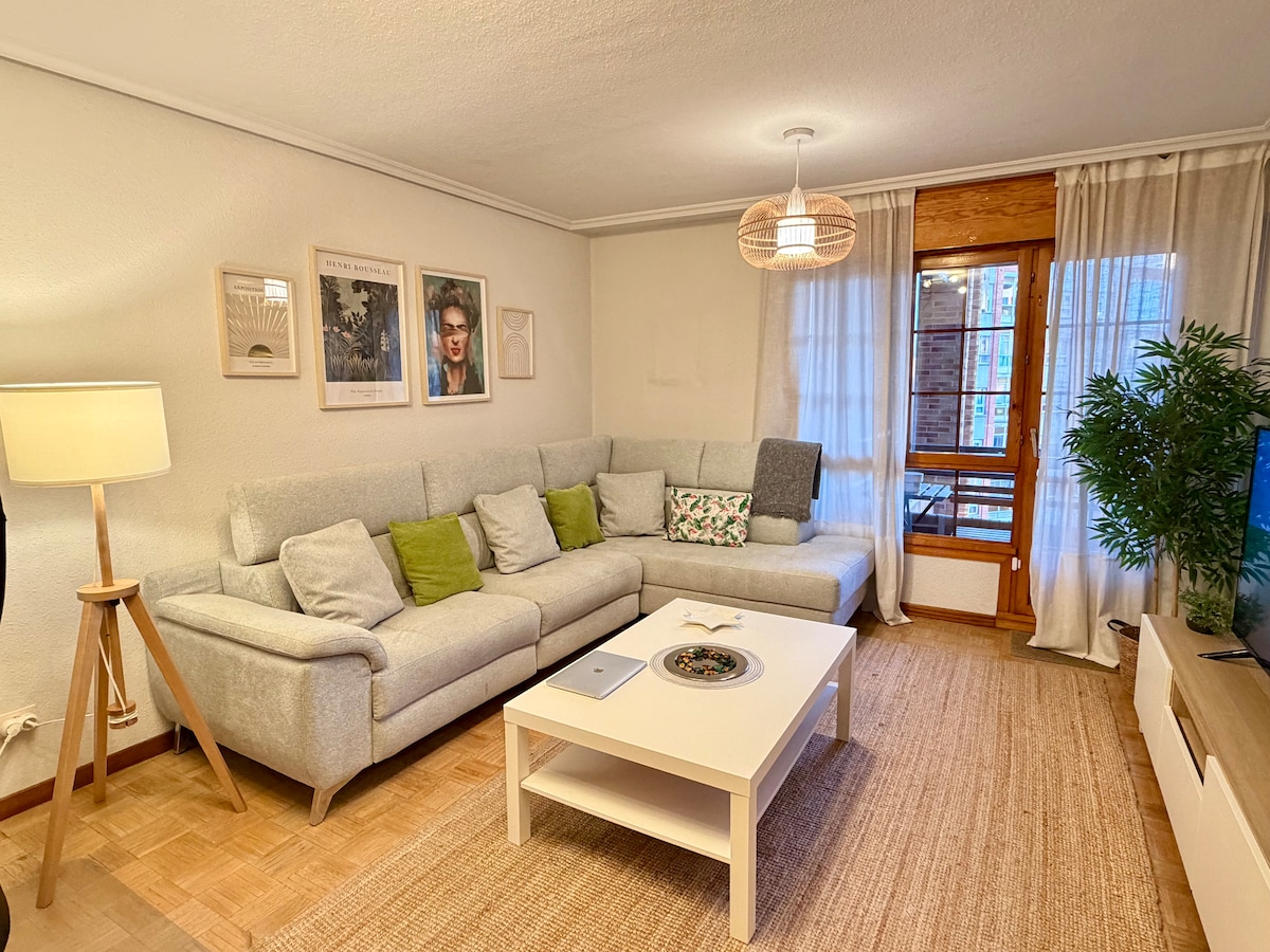Enjoy Avilés in our modern and cosy city centre flat for 6 people. Just a 5-minute walk from the historic centre, this retreat has a terrace, underfloor heating and all the amenities you need for a perfect stay. Ideal for families and friends looking to explore Asturias in style and comfort. Your home in the heart of the city! 10 min from Salinas beach and 17 min from Xago beach. It is only 25 km from Gijón and 27 km from Oviedo.