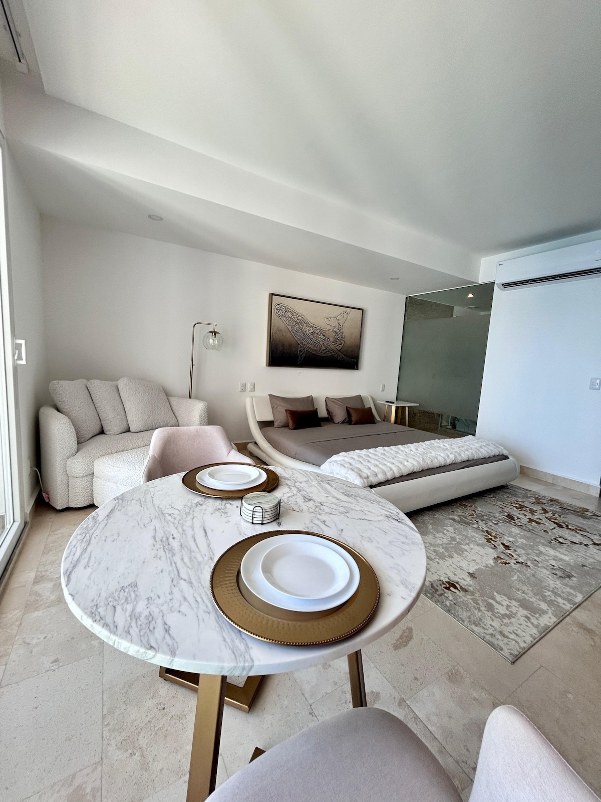This is New Via Milan condo open from May 2023. Apartment is comfortable, spacious open space one bedroom with a lot of natural light, great view, exterior sitting- dining area. Cosy and comfortable home ! It is located in the trendy Versalles, full of restaurants and cool places, close to supermarket, shopping, hospitals (which makes it also great location for people coming for treatments). It has all the necessary amenities and fantastic large pool with ocean views. Few min to Costco and Beach