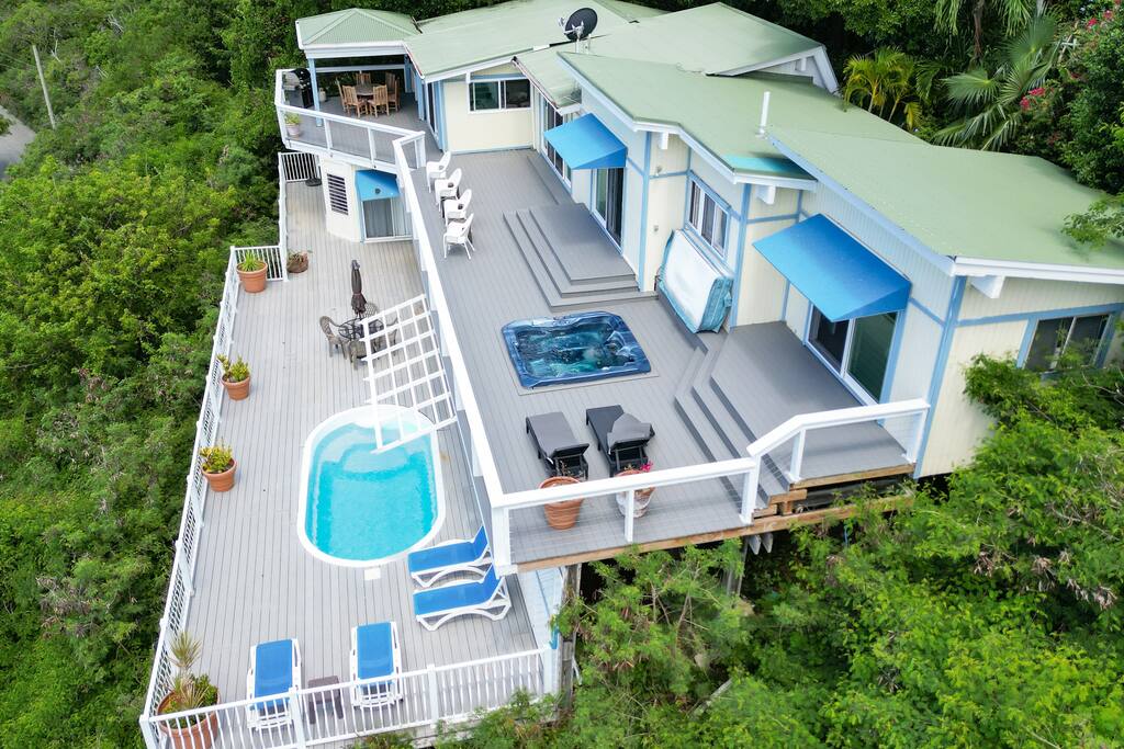 Novo prenočišče! Ta na novo prenovljena luksuzna vila se nahaja na vzhodnem koncu ulice St. Thomas in je le 5 minut hoje oddaljena od plaže Ritz. Je prostorno prenočišče s tremi posteljami in 3,5 kopalnicami z zasebno masažno kadjo. Vsak kotiček je opremljen s sodobnim dekorjem, ki brezhibno združuje sodoben slog z otoškim šarmom. Na prostrani terasi lahko uživate v razgledu na ocean in tropskem vetriču. Na priročni lokaciji v bližini trgovin, restavracij in trajekta do St. Johna, bivanje tukaj obljublja popolno mešanico sprostitve in pustolovščin.