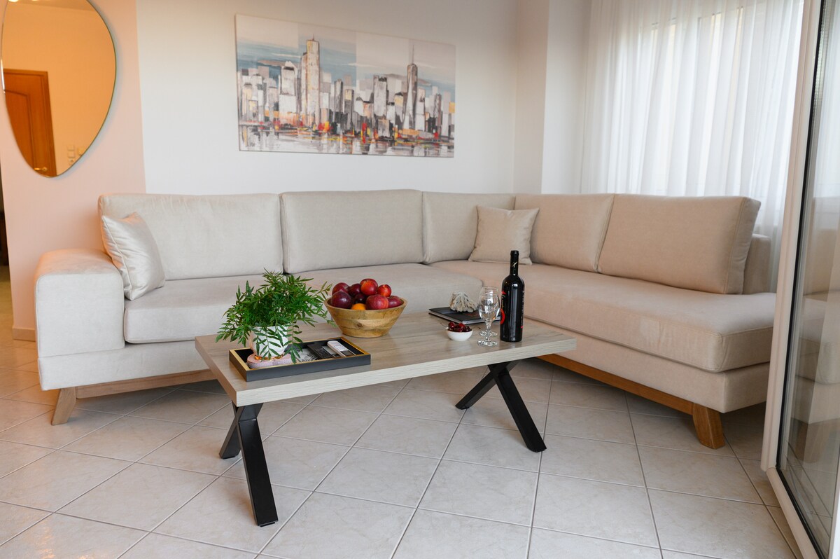 Dobrodošli v Eleninem udobnem garsonjerskem stanovanju! Najino bivališče je mirno in elegantno, od letališča in pristanišča pa ga loči le kratek vožnja. Do središča mesta se lahko pripeljete v 5 minutah s taksijem ali avtobusom. Nahajamo se blizu morja, v neposredni bližini našega bivališča pa so supermarketi, kavarne in restavracije s slastno tradicionalno hrano. To je popoln kraj za udobno in priročno bivanje.