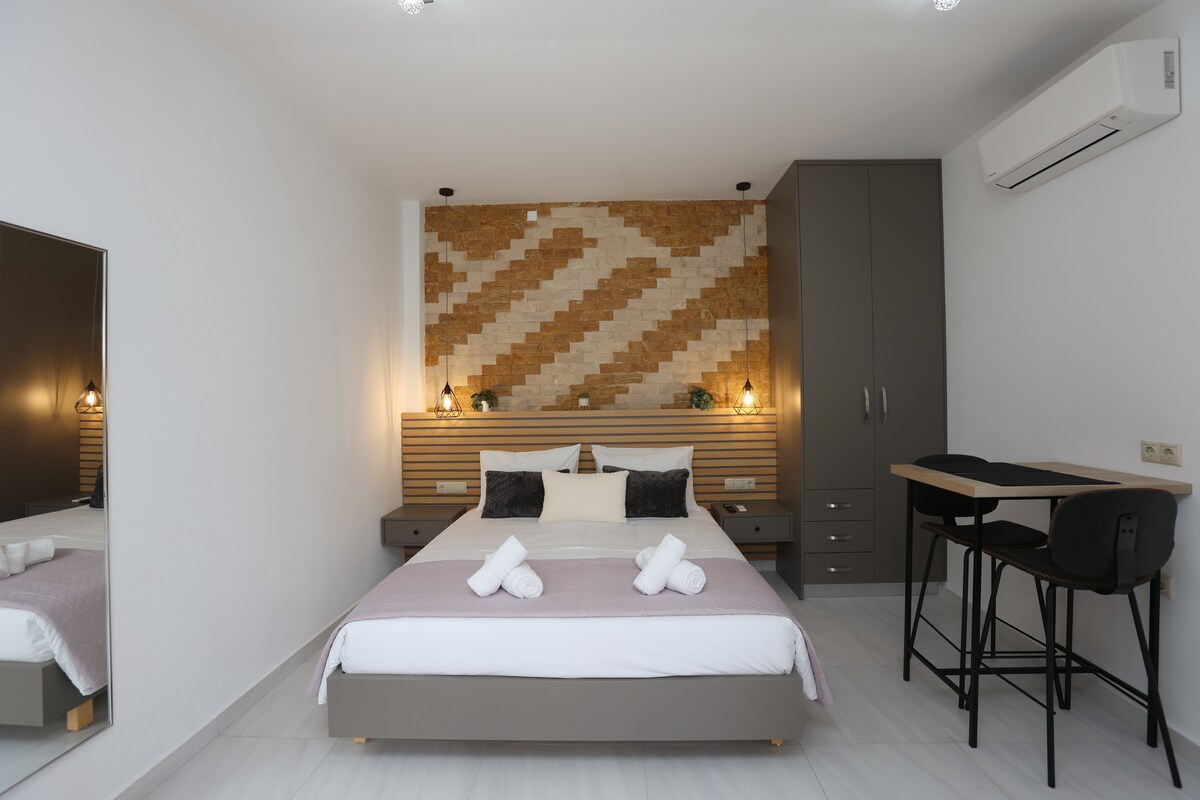 Priročno se nahaja za raziskovanje Heraklion in bližnjih znamenitosti Urban Hive Deluxe Suite (39m2) ponuja 2-4 gostom razkošje, udobje in zasebnost. Je na novo prenovljen in popolnoma opremljen s sodobnim pohištvom. Uživajte v miru četrti Heraklion, le 15 minut hoje do centra, 10 minut hoje do pristanišča in 3 km do letališča. V bližini se nahaja pekarna, kavarna, lekarna, trgovina z živili, supermarket.