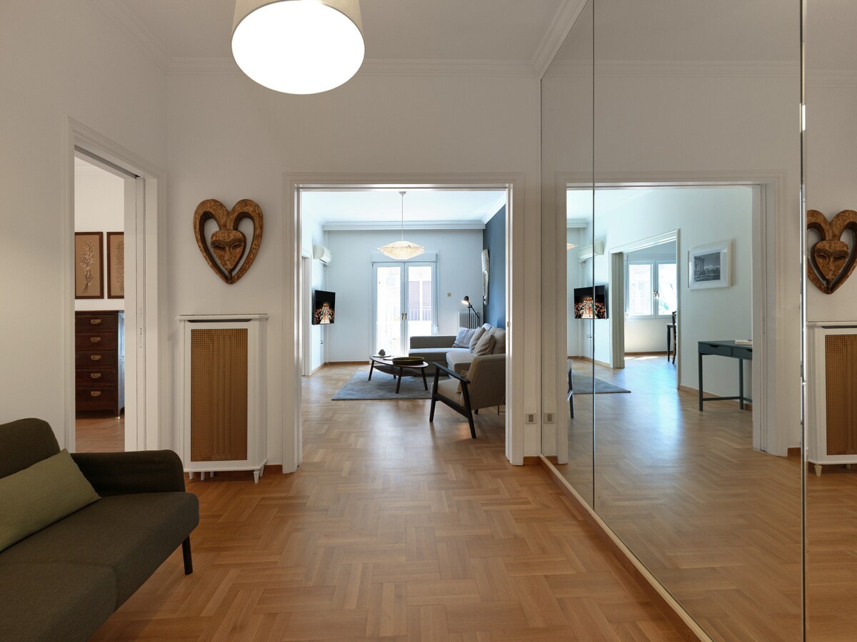 The stylish 52sqm apartment has a bedroom, a living room, a kitchen, a bathroom with a big tub and a private parking spot. It’s a perfect for 2-3 people who want to explore the capital of Greece. The house is located right in the heart of Athens, just 2min away from the Metro station “Aghios Eleftherios”. From there, in only 13 minutes you can reach Monastiraki, the most famous flea market in town, and in 15min you can arrive to Thisio, where you can reach the Parthenon and the Acropolis museum.
