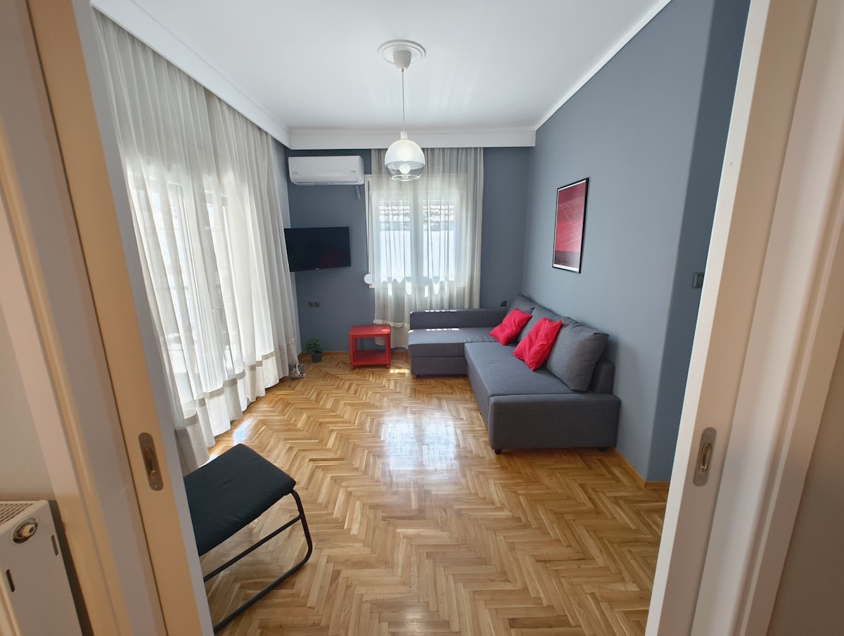 The Loft Apartment is located in the most beautiful area of Thessaloniki, in Kalamaria - 50 m od morja - 10 min od središča mesta - 10 min od letališča Le nekaj korakov stran od restavracij , kavarn , barov, peščene plaže, marine za jahte, jadralnih in veslaških klubov, ki jih ponuja stanovanje: - Široka odprta soba z balkonom - Opremljena kuhinja - Sodobna kopalnica - 1 zakonska postelja - 1 raztegljiv kavč - Oprema za dobrodošlico - Hitri internet - Brezplačno parkiranje - pametna televizija z Netflixom - klimatska naprava,