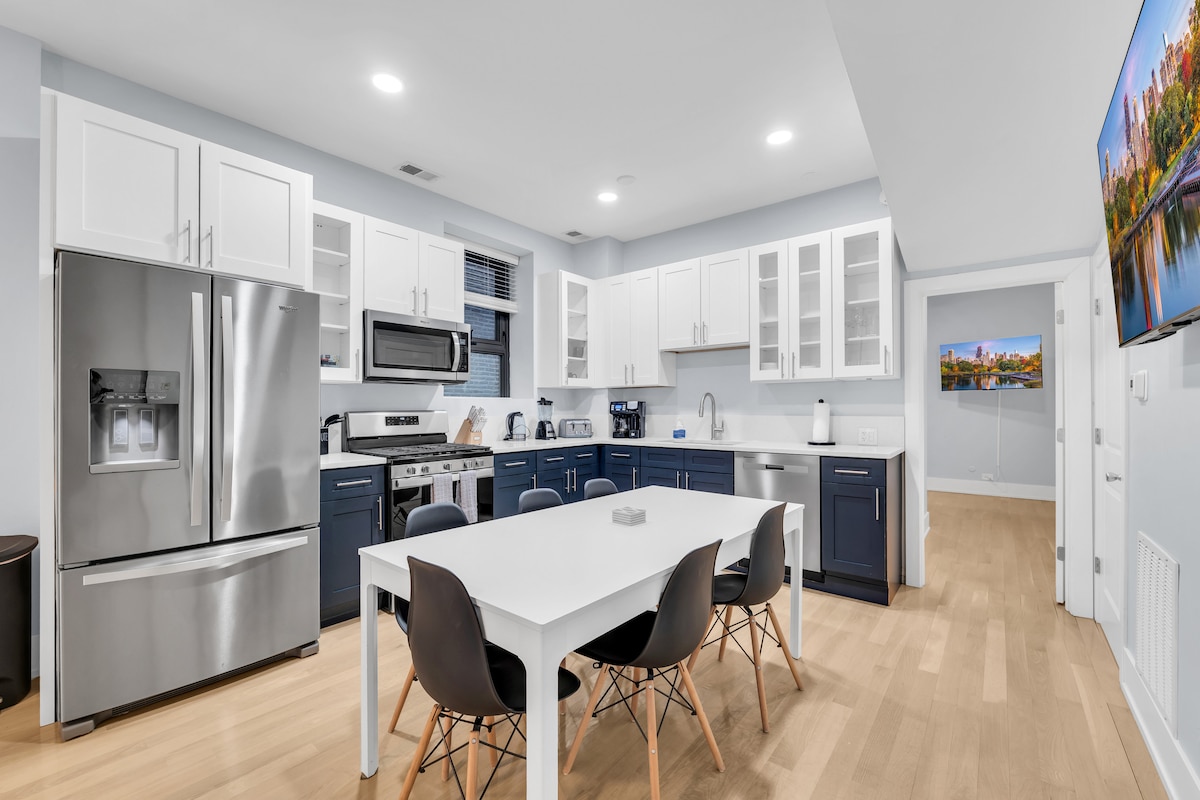 Uživajte v elegantnem doživetju v tem bivališču, ki se nahaja v središču mesta. ✨🏙️ Osupljiva sodobna dvosobna enota z 2 kopalnicama, ki je primerna za poslovne popotnike 💼 in družine, ki iščejo eleganten oddih v središču Chicaga. 🌆 🔥 Strešna terasa z žarom 🚗 Brezplačno parkiranje (5 minut hoje do garaže) 🏠 2 spalnici | 2 kopalnici 🛏️ 2 zakonski postelji in raztegljiv kavč (raztegljiv kavč za 1 osebo) 🛌 2 napihljivi napihljivi napihljivi postelji 👶 Prenosna otroška posteljica (za mini potovalnega spremljevalca) 🎬 Netflix, Hulu, Disney+ in Prime so vključeni