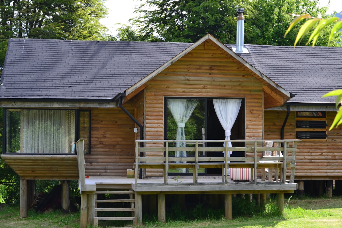 Koča za 2 osebi v gozdu Punahue 5 km od Choshuenca, 10 km od Neltumeja in 15 km od Puerto Fuyja, idealno za tiste, ki iščejo mir in naravo. Blizu plaž, rek in biološkega rezervata Huilo Huilo. Vključuje udobno posteljo, opremljeno kuhinjo, zasebno kopalnico, TV, parkirišče, teraso in žar. Intimen in miren prostor za odklop in uživanje. Visoka 📌 sezona (januar, februar, prazniki): ob rezervaciji zahtevamo predstavitev. Iščemo goste, ki cenijo in skrbijo za bivališče.