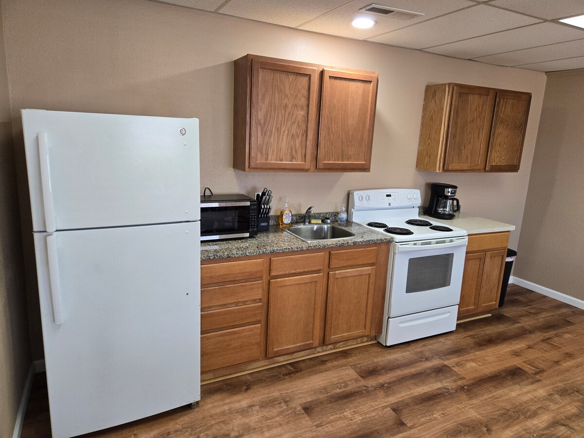 Celotna skupina bo imela enostaven dostop do vsega iz tega bivališča v središču mesta. Če želite, se lahko sprehodite do trgovine Dollar General, trgovine z živili in bencinske črpalke, saj so vsi oddaljeni 1 ulico. Zadovoljni boste z velikim odprtim prostorom, ki vključuje 2 spalnici in 3 zakonske postelje. Pametni televizorji in Wi-Fi so vključeni. Lovci in delavci so dobrodošli. Prostor za napihljive vzmetnice, upoštevana daljša bivanja. Pripeljite prikolico, ker bo srednje veliko parkirišče omogočilo dovolj prostora