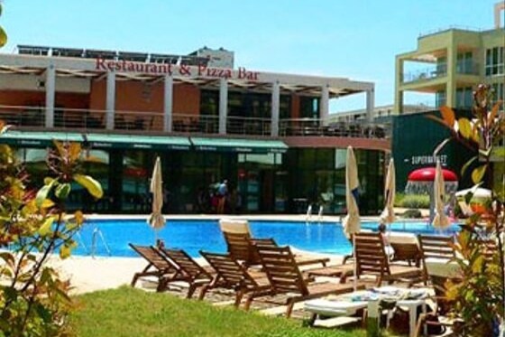 Prostorni kompleks Polo Resort za popolne počitnice v Sunny Beachu v Bolgariji Dobrodošli v našem sodobnem kompleksu, ki je kot nalašč za udobno bivanje! Tukaj boste našli: - Velik bazen za osvežujoče plavanje - Restavracija z okusno hrano in pijačo - Igrišče za neskončno zabavo Naš kompleks, ki se nahaja na slikoviti lokaciji, le 400 metrov od peščenih plaž Sunny Beacha, ponuja vse, kar potrebujete za sproščujoče družinske počitnice ali sprostitev s prijatelji.