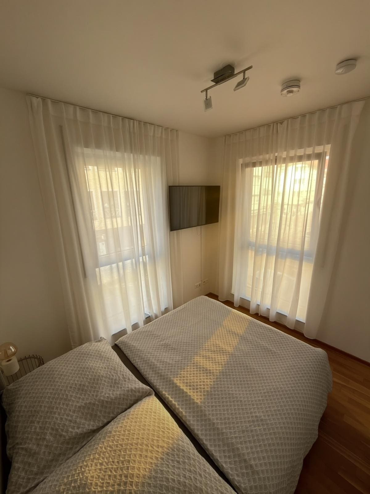 Fantastično stanovanje s 66m² sredi Neu-Ulm na Donavi za najem. Apartma je popolnoma opremljen in ga lahko zasedejo 4 osebe. Imeli boste tudi popolnoma opremljeno kuhinjo z indukcijo, hladilnik, opekač kruha, kuhalnik za vodo, aparat za kavo (Tassimo) in posodo. Poleg vzmetne postelje (2m x 1,80m) v spalnem prostoru se lahko oba kavča v dnevni sobi izvlečeta na 2m x 1m posteljo z letveno podlago. Terasa je prosto dostopna vsem gostom!