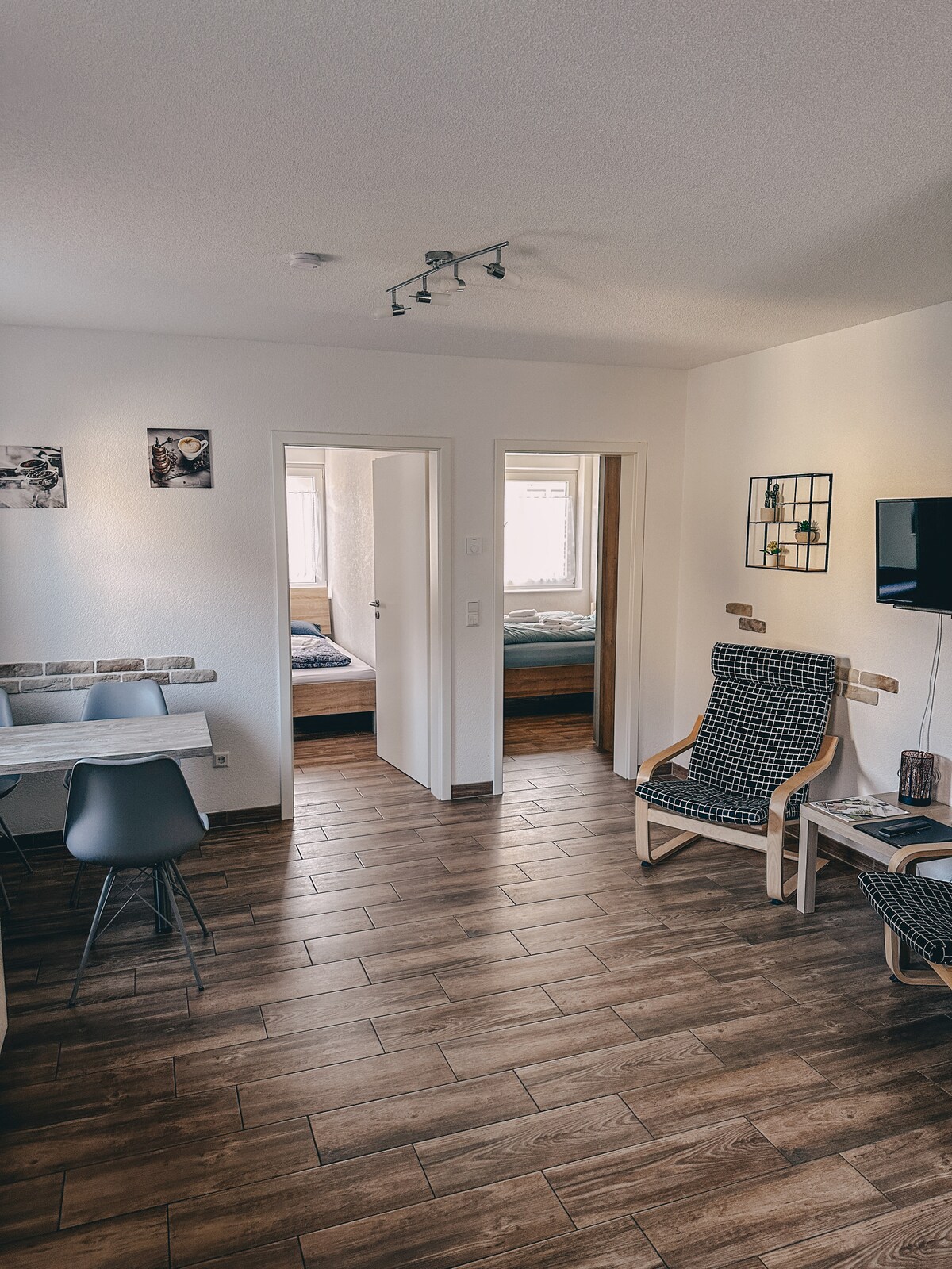* Brezplačno parkirišče, vrtni paviljon in balkon * Dnevna soba s kaminom, kotičkom za branje, visečim stolom in televizorjem 4k * Družinam prijazno - otroški stol za hranjenje, potovalna otroška posteljica, otroški jedilni pribor * Nova popolnoma opremljena kuhinja - kava, začimbe in prigrizki * 85 kvadratnih metrov veliko stanovanje v 1. nadstropju * Delovna postaja s pisarniškim stolom, zunanjim monitorjem in povezavo Lan * Klimatska naprava za jedilnico