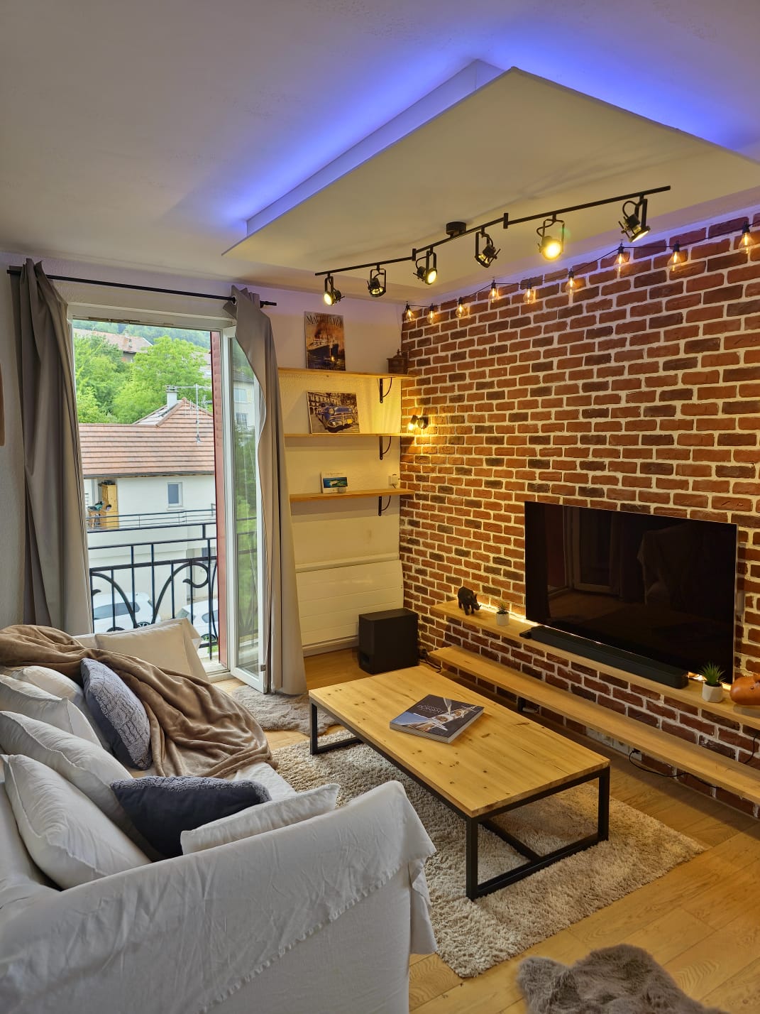 Velik studio velikosti 45 m2 z dvigalom v osrčju mesta Evian les Bains, v bližini vsega: peš, jezero, trgovine, termalne kopeli, kongresni center, pomol za odhod v Švico. Prostor je urejen z dnevnim kotom: kuhinja /dnevna soba, kjer je kavč zložljiv za 2 postelji in nočni kotiček z zakonsko posteljo. Internet z vlakni in Wi-Fi. Idealno stanovanje za odkrivanje regije, urejeno ali poslovno! možnost zasebnega varnega parkiranja proti plačilu