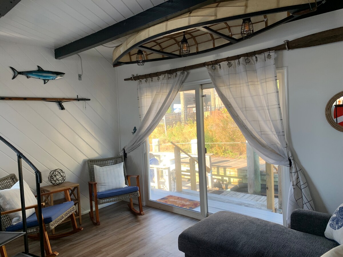 Ta nenavadna hiša na vodi se nahaja v majhni zasebni marini na Sagamore Creeku, le 3 km od središča Portsmoutha. V Marini lahko najamete kajake in deske za veslanje ali pa s seboj prinesete majhen čoln, ki ga lahko privežete poleg hiše na vodi. Raziščite potoke in kanale na morskem območju, kjer boste našli plešaste orle, sokole in druge prostoživeče živali. Odlično opazovanje ptic kar z zadnje terase.