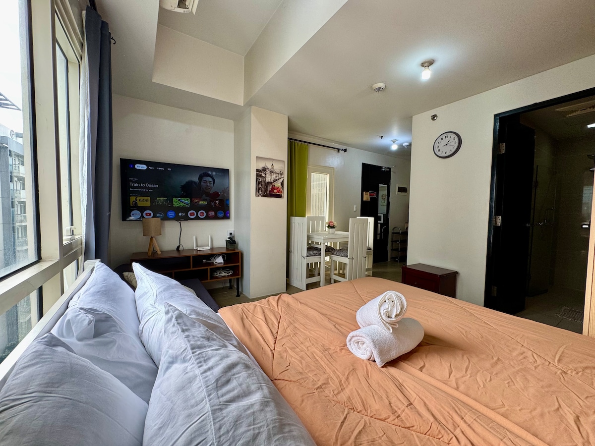 Cozy Studio Apartment located at the Newport Boulevard opposite of NAIA Terminal 3. Our apartment has easy access to: *Airports *Runway Manila *Resorts World Manila *Watsons And other establishments like restaurants, coffee shops, shopping malls and supermarkets. The apartment also comes with: *King size bed *Balcony *Smart TV *Dining area (cooking not allowed) *Hot and cold shower *Excellent Wifi connection *Pool access from 7am till 7pm (except for Mondays)