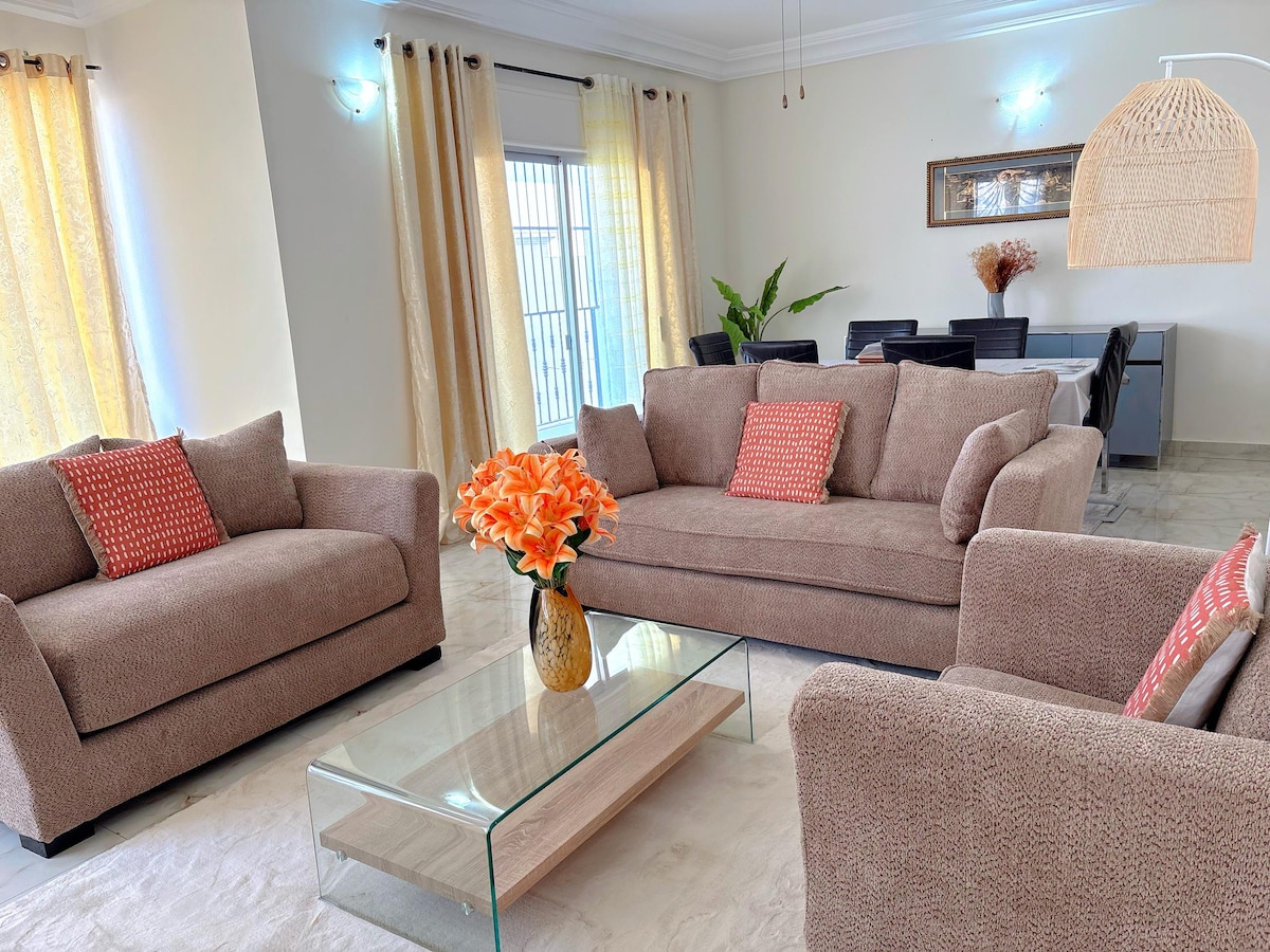 Stay just steps from the ocean in the heart of Almadies, one of Dakar’s most vibrant neighborhoods. This bright and spacious 3-bedroom apartment is located within walking distance of popular restaurants such as Ngor, Sharky’s and Cabanon, the American Food Store, the King Fahd Palace Hotel, and La Pointe des Almadies. Freshly renovated, it offers a large living room, a fully equipped modern kitchen, and three bedrooms. Guests also enjoy private parking, a generator, and 24-hour security.