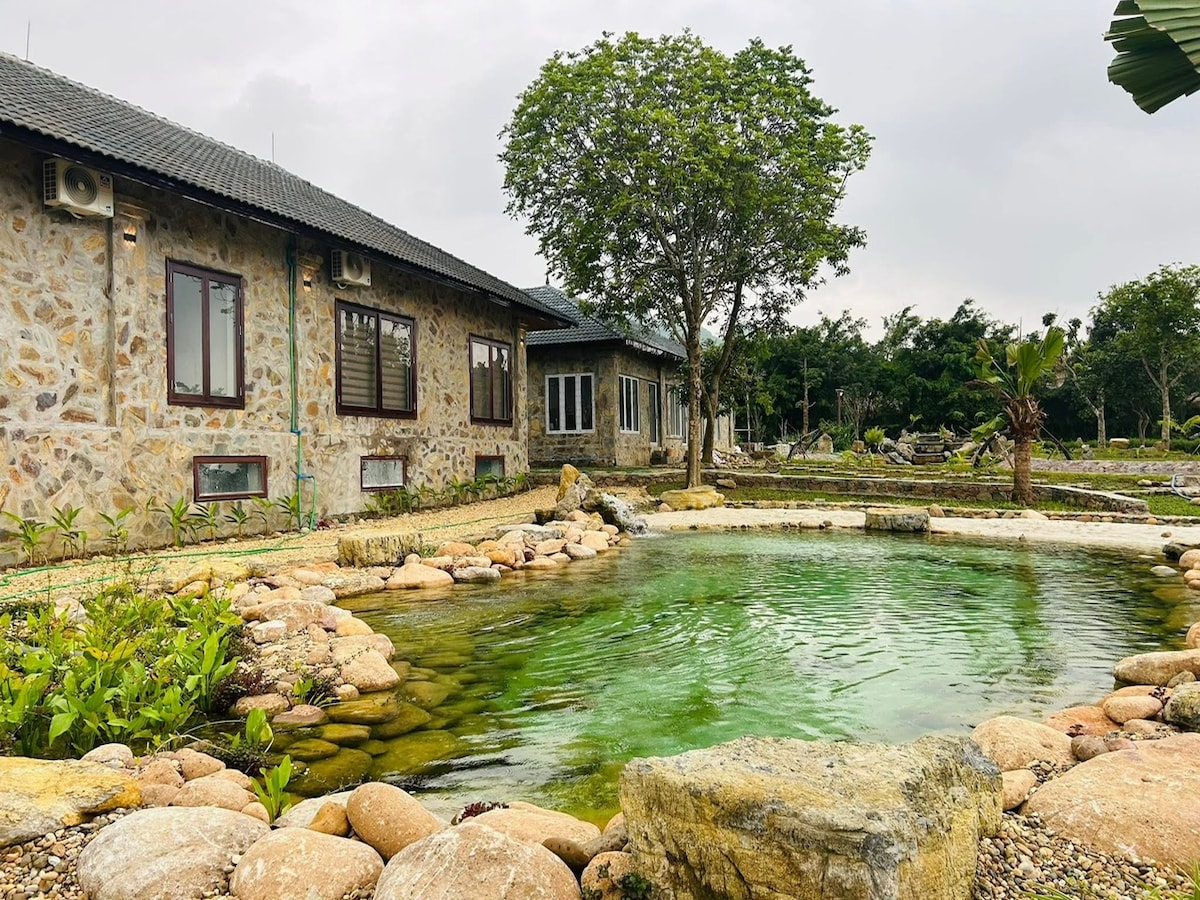 Thanh Xuan Garden Villa offers a luxury retreat set in the natural beauty of Cuc Phuong. This modern villa features three lake-view sides with a stream running through the garden, five spacious bedrooms with large glass windows and elegant bathtubs, and a private 150 m² pool. A 2000 m² garden provides space for dinners, BBQs, or boutique events. Guests enjoy free access to hot and cold mineral pools, premium sports areas, and resort bicycles. Ideal for private, peaceful retreats great escape!