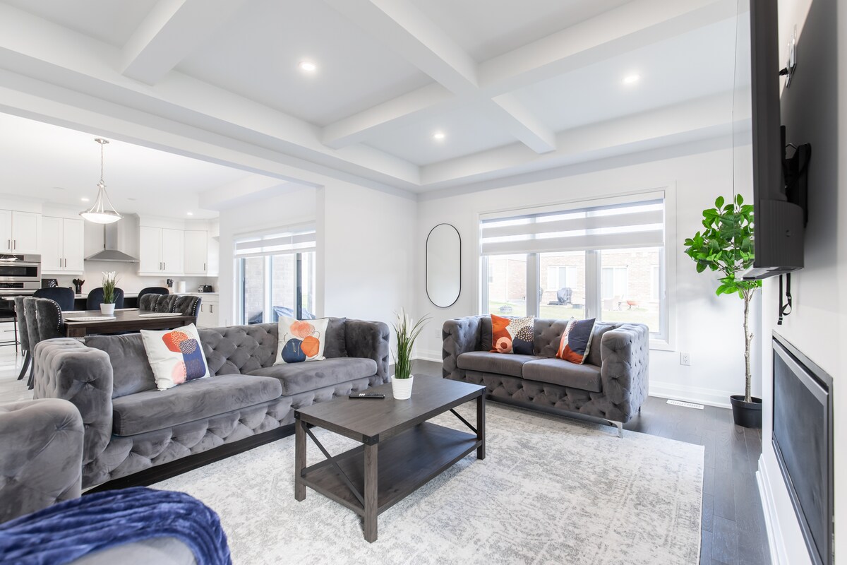 Dobrodošli v našem prostornem prenočišču s 4 udobnimi spalnicami, 3,5 kopalnicami in vabljivim zunanjim dnevnim prostorom. Naša mirna soseska, ki je kot nalašč za družine, pare in majhne skupine, je oddaljena le 5 minut vožnje ali 15 minut hoje do Clifton Hilla in 10-15 minut vožnje do vinskih kleti Niagara-on-the-Lake. Naše popolnoma opremljene sobe so opremljene z vso opremo, ki jo potrebujete, medtem ko je naša luksuzna kuhinja s kremenčevimi pulti kot nalašč za pripravo okusnih obrokov.