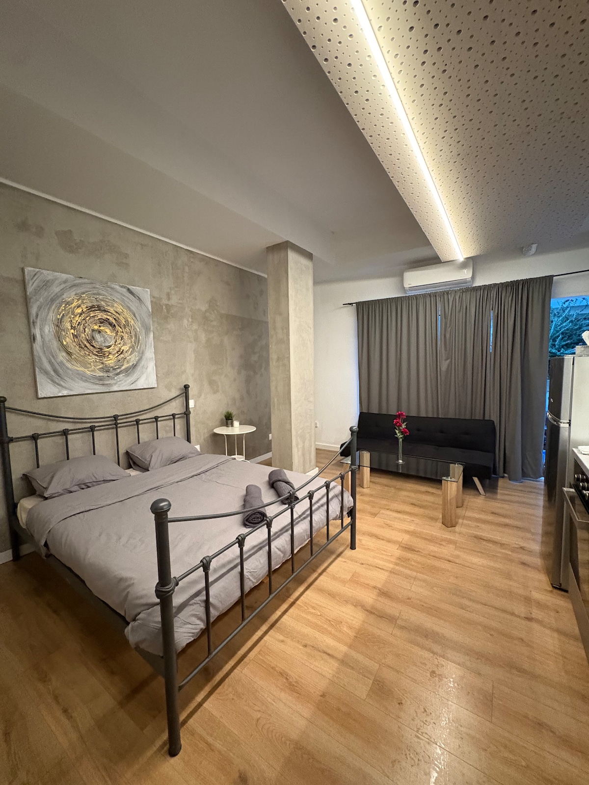 Sodobno udobje s ciprskim pridihom Bivajte v osrčju starega mestnega jedra Nikozije v tem elegantnem enosobnem stanovanju s pokritim balkonom s pravljičnimi lučmi in osupljivim razgledom na mesto. Uživajte v sodobni kuhinji po meri, udobnem bivalnem prostoru in kopalnici v spalnici. 🌇 Posebnosti: ✔ 15 m2 velik balkon – večerja z razgledom Odlična ✔ lokacija – sprehod do znamenitosti in kavarn ✔ Hiter Wi-Fi in klimatska naprava ✔ Samostojni vstop in priboljški za dobrodošlico Idealno za pare in poslovne popotnike. Rezervirajte zdaj!