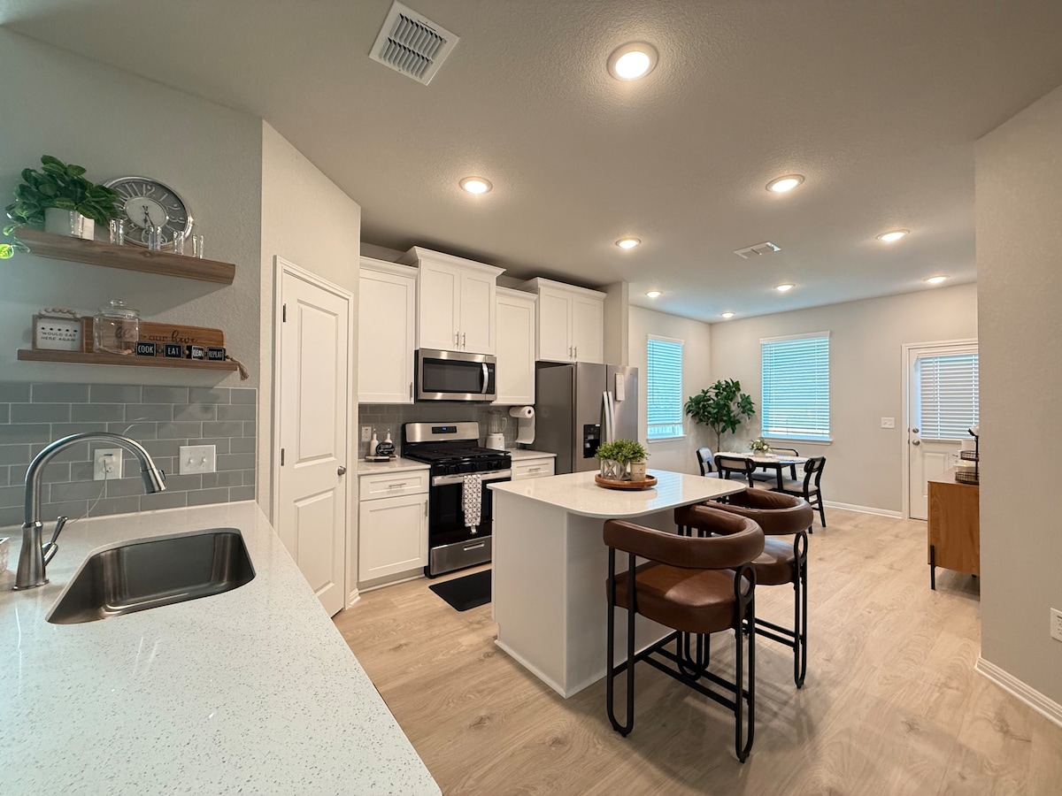 Dobrodošli v svojem novem drugem domu. Ta oaza se nahaja na priročni lokaciji 20 minut od Austina, 45 minut od San Antonia in 10 minut od San Marcosa. Uživajte v bližnjih tovornjakih s hrano ali pa pustite, da se otroci zabavajo na igrišču ali v bazenu v soseski. Elegantna notranjost vključuje sodobno udobje, kot so 75-palčna televizija, internet, igre, zunanja terasa, ognjišče in še več. Od bolnišnice vas loči manj kot miljo, od restavracij, trgovin, H-E-B, pasjega parka in avtoceste I-35 pa boste oddaljeni manj kot miljo.