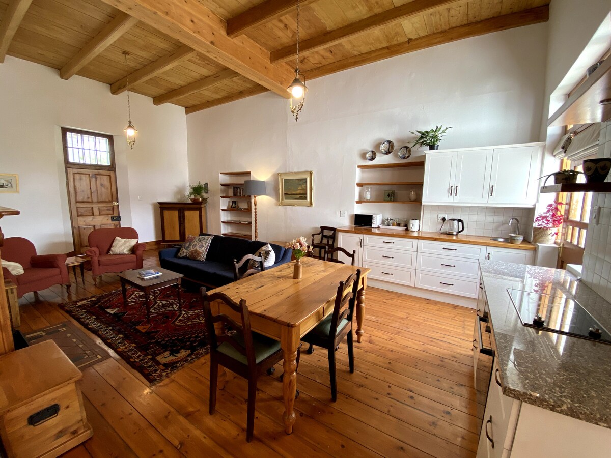 Mirna, zasebna in mirna hiška na deželi, 17 km od Graaff-Reineta . Obkrožena z naravo in gorami. Bogato ptičje življenje. Neskončno za hojo, pohodništvo, gorsko kolesarjenje in piknike. Ceste 4x4. Čudovito skrbite za nekaj dežja! Hiška na deželi ima popolnoma opremljeno kuhinjo in 2 spalnici v spalnici ter spalni kavč v dnevni sobi. Dnevni prostor ima klimatsko napravo. Notranji kamin in zunanji braai. Uporaba bazena . Kraj za sprostitev.