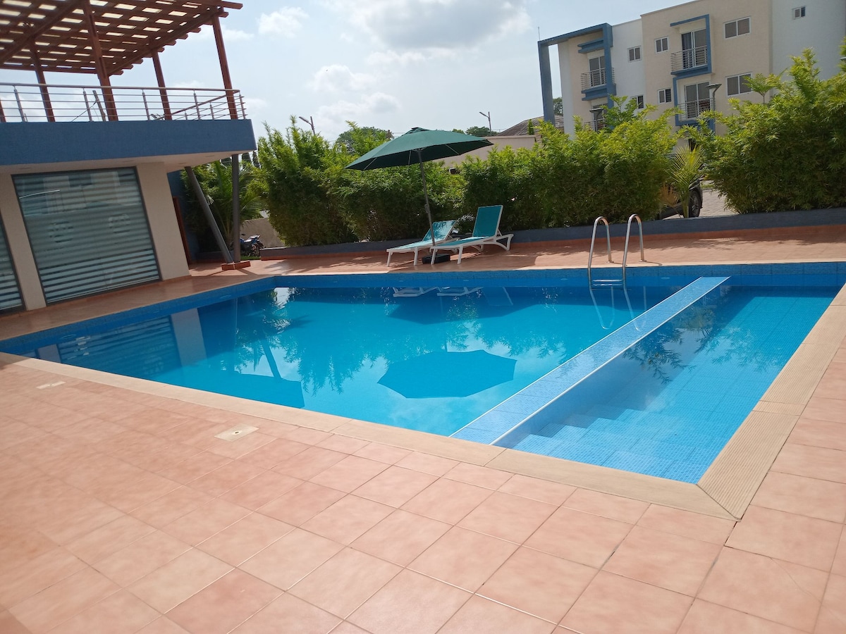 Take it easy at this unique and tranquil getaway studio apartment located within the prime and secured Cantonments area near the US embassy. Excellent location; 7 mins from Kotoka International Airport and within 10min radius from the city's major shopping centers and restaurants. It offers guests a cozy feel from the inside and breathtaking serene view of the pool and beautiful garden. This newly furnished 2nd floor studio is designed to cater for business, leisure & long stays.