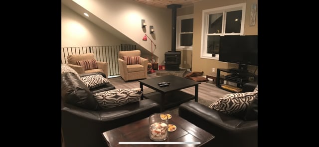 Kletna enota z 1 spalnico, zajtrkovalnico/kotičkom za kavo in dnevno sobo. Uživali boste v čistoči in tišini namestitve. Idealno je za samsko osebo in pare. Nahajate se le kratek sprehod od centra Evergreen. Poti za motorne sani se začnejo tik ob hiši. Za parkiranje sta na voljo celoten nadstrešek za avtomobil in dovoz.