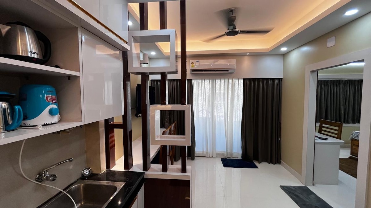 Dobrodošli v našem elegantnem stanovanju 2 BHK, ki je kot nalašč za družinska bivanja! Uživajte v dveh udobnih zakonskih posteljah IKEA in raztegljivem kavču v popolnoma klimatiziranih sobah, vključno s prostorno dnevno sobo. Odprta, čista vegetarijanska kuhinja je popolnoma opremljena za vaše potrebe. Od plaže Blue Flag smo oddaljeni le 600 metrov, od templja Sri Jagannath pa 1,5 km, ki ponuja idealno zasebnost in udobje za daljša bivanja. Nahaja se na širokih, dobro vzdrževanih cestah. Doživite popolno mešanico sprostitve in priročnosti.