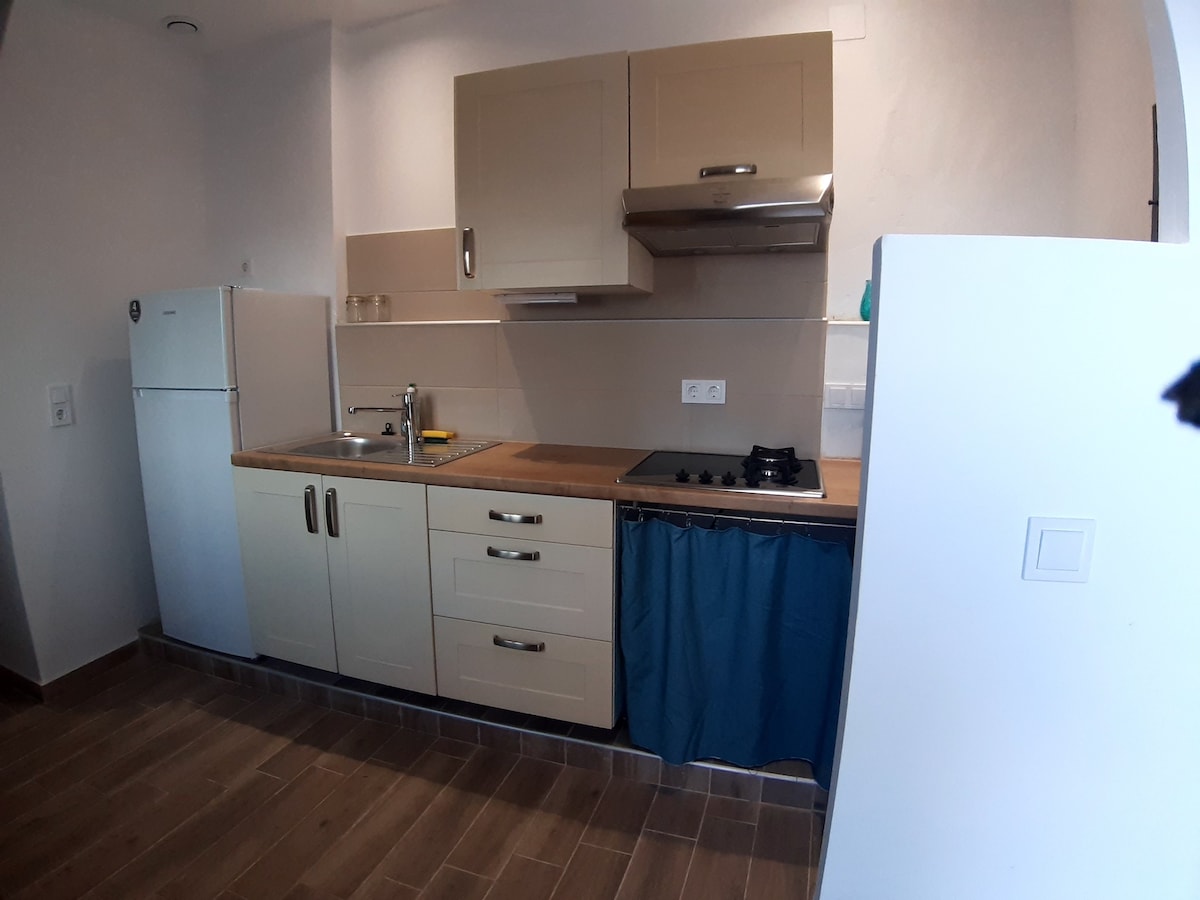 Moderna in sodobna garsonjera, ki se nahaja le 300 metrov od središča mesta in v neposredni bližini obalne ceste, kjer se nahaja večina restavracij in kavarn na tem območju. Zračna in lepa nastanitev, ki zagotavlja vse udobje za najboljše možno bivanje v našem kraju! Vključuje samostojen zasebni vhod in lepo teraso. Sestavljen je iz skoraj samostojne spalnice, kopalnice in enotnega prostora, ki vključuje kavč, ki se spremeni v posteljo, in kuhinjo.