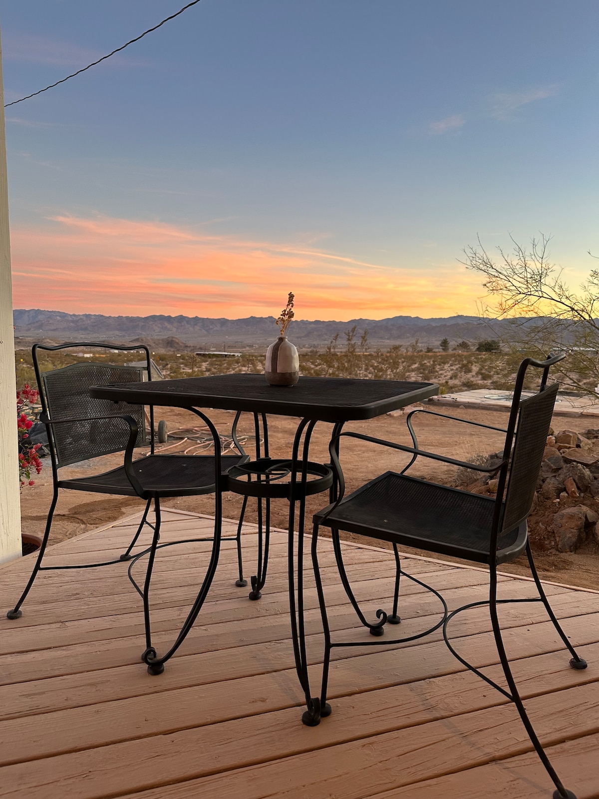 A design-conscious retreat w/ mountain views! >>this is the place honors form + function equally with solid brass fixtures, a copper bartop, stained concrete floors, and vintage cotton Matteo linens. Curated modern + vintage elements blend to cultivate a space of rest, reflection & creative flow. Private outdoor space with gas firepit & grill. Within easy walking distance of Noah Purifoys Outdoor Art Museum. 8min to downtown, 15 to the park. Our modern sanctuary is ideal for the art-minded soul.
