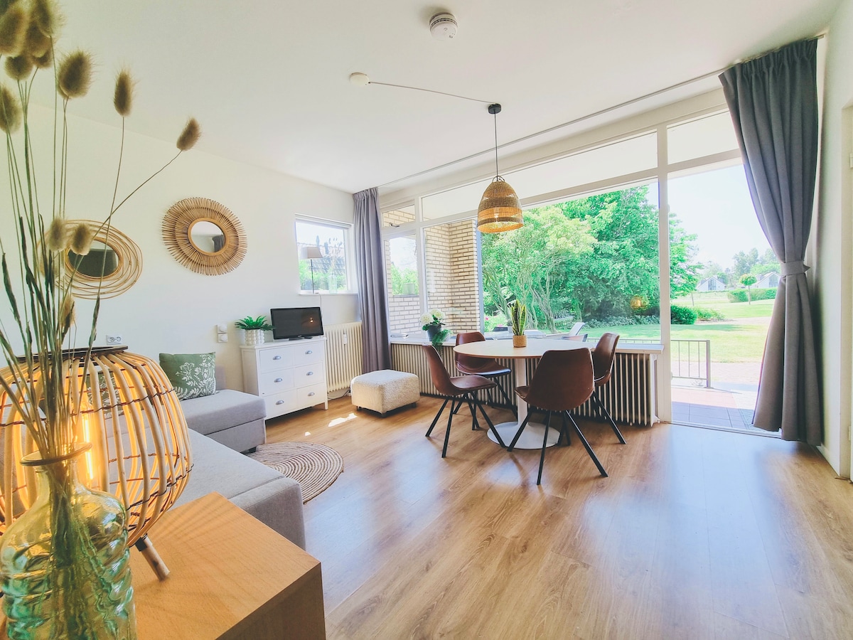 Uživajte v našem udobnem družinskem bungalovu s 38 m2 in zelo prostornim "ograjenim" vrtom, ki se nahaja na robu gozda in sipin, z morjem na 900 m. Izjemno primeren za družine (z otroki), pare in največ 2 psa. Če se želite umakniti od vrveža, se lahko tukaj sprostite in uživate. Bulevar, restavracije in trgovine se nahajajo približno 4 km od bungalova. Bungalov se nahaja v mirnem družinskem parku, zato ni primeren za zabave in skupine mladih.