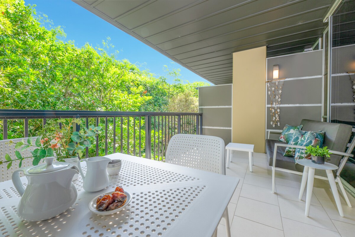 Butično enosobno stanovanje s pogledom na deževno gozdnato grmovje, ki se nahaja v zgornjem nadstropju mednarodno priznanega letovišča Peppers Noosa s 5 zvezdicami. Samo 5 minut hoje do svetlečega belega peska glavne plaže Noosa, oblikovalskih trgovin in restavracij na ulici Hastings. Letovišče ima vse objekte, vključno z ogrevanimi bazeni, telovadnico, parno sobo, nagrajenim dnevnim spajem in restavracijo Matt Golinkski »Pogled«. Vključeni so Wi-Fi, Netflix, zvočnik Bluetooth, aparat za kavo in parkirišče.