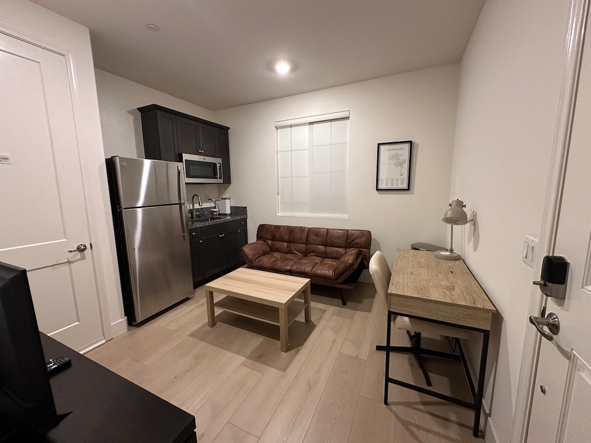 Dobrodošli v svojem zasebnem prenočišču v osrčju Riversidea. Udobna hiša za goste je povezana z glavno hišo. Idealno za pare, samostojne popotnike ali poslovna potovanja. Uživajte v mirni namestitvi z ograjo, le nekaj minut stran od mest Downtown Riverside, Mission Inn, UCR in še marsikaj drugega. Vrhunci: Zasebni vhod in namensko parkirišče Popolnoma založena kuhinjska niša (štedilnik, pečica, mikrovalovna pečica, hladilnik, aparat za kavo Keurig, cvrtnik) Hitri Wi-Fi in pametna televizija Zakonska postelja (Queen) + raztegljiv kavč Enostaven dostop do avtocest (91/60/215)