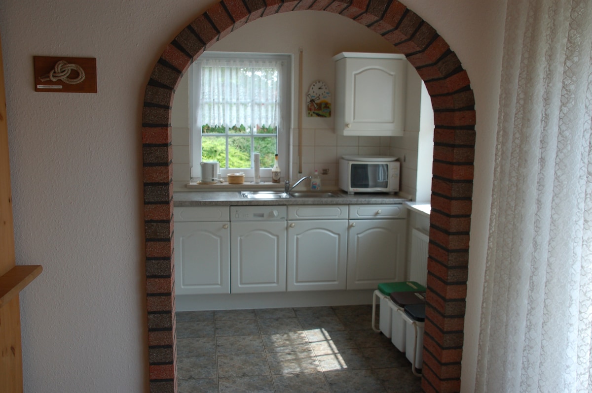 Hiša leži nedaleč od Nord-Ostseekanala. Imamo teraso in vrt za preživljanje časa in pripravo zajtrka na prostem, če to dopušča:-) Na voljo je skupinam, družinam in kolesarjem. Do zdaj lahko do kopalnice pridete samo skozi dvoposteljno sobo. Iščemo drugo rešitev. V 125 qm imate veliko prostora. Trgovine za dnevne potrebe so v bližini. In obstaja veliko možnosti za enodnevne izlete.